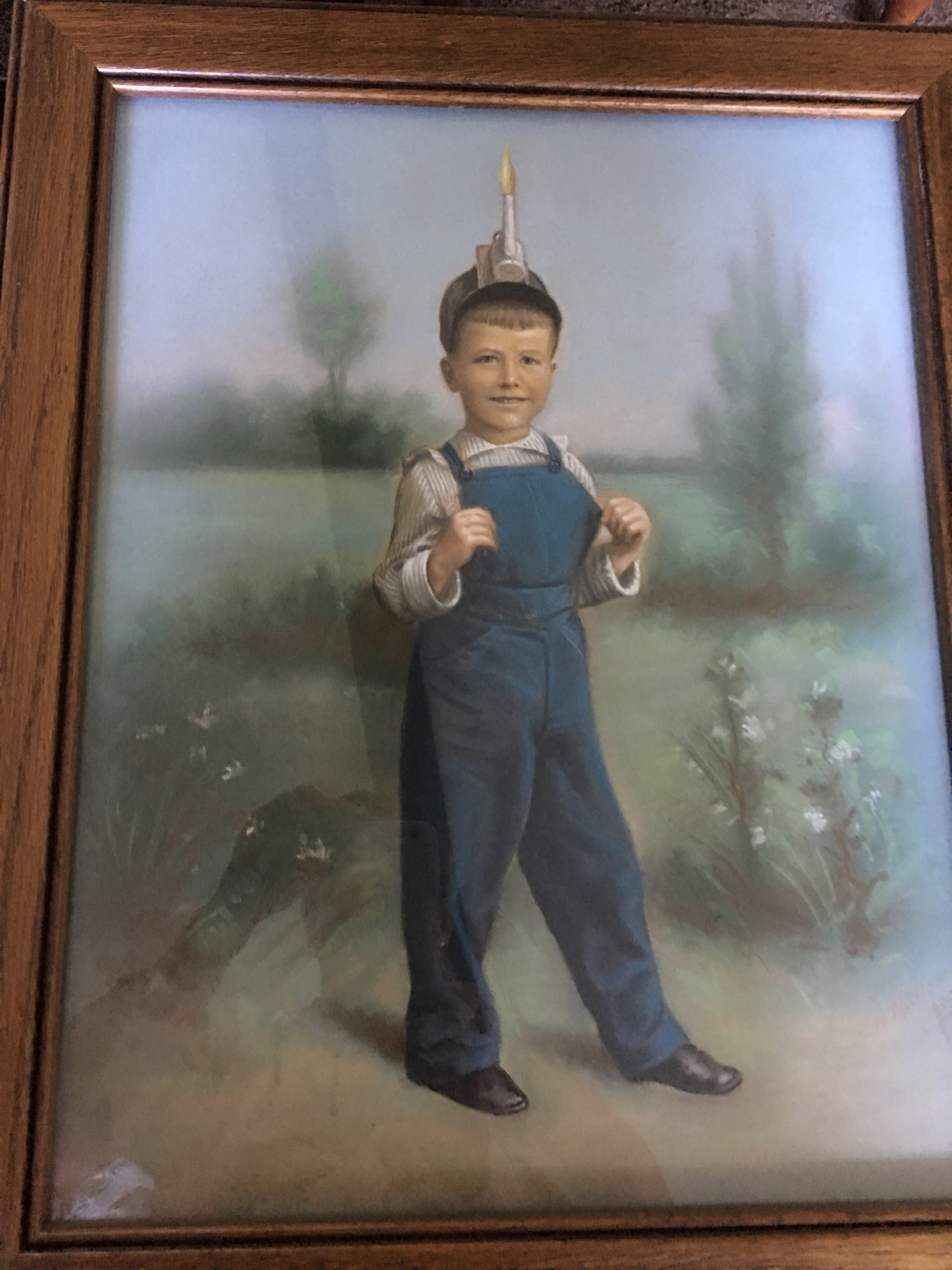 I love this chapter.  So did the children.  I realized I could connect what happened down in that well to something real; a portrait of my grandfather as a little boy wearing miner’s gear, including a candle on his helmet.  My grandfather and his father had mines in Pennsylvania and West Virginia.  I grew up with their stories and photographs, including this portrait.