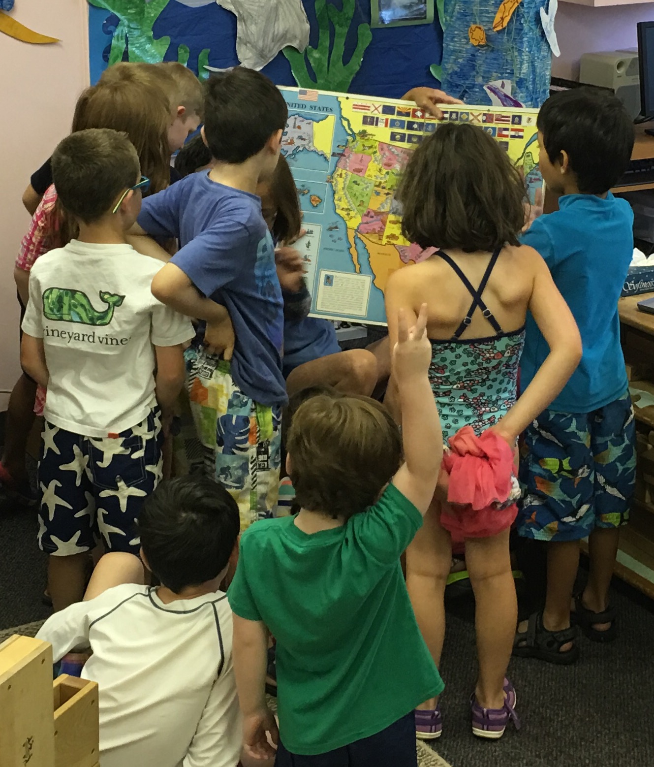 Rattlesnakes came up in the conversation again. I turned to the map of the world to show children where it was hot, like the southwest. “Where is the hottest place in the world?” I asked. Fifteen fingers and pushing, excited children guessed. Of course we learned about the equator.