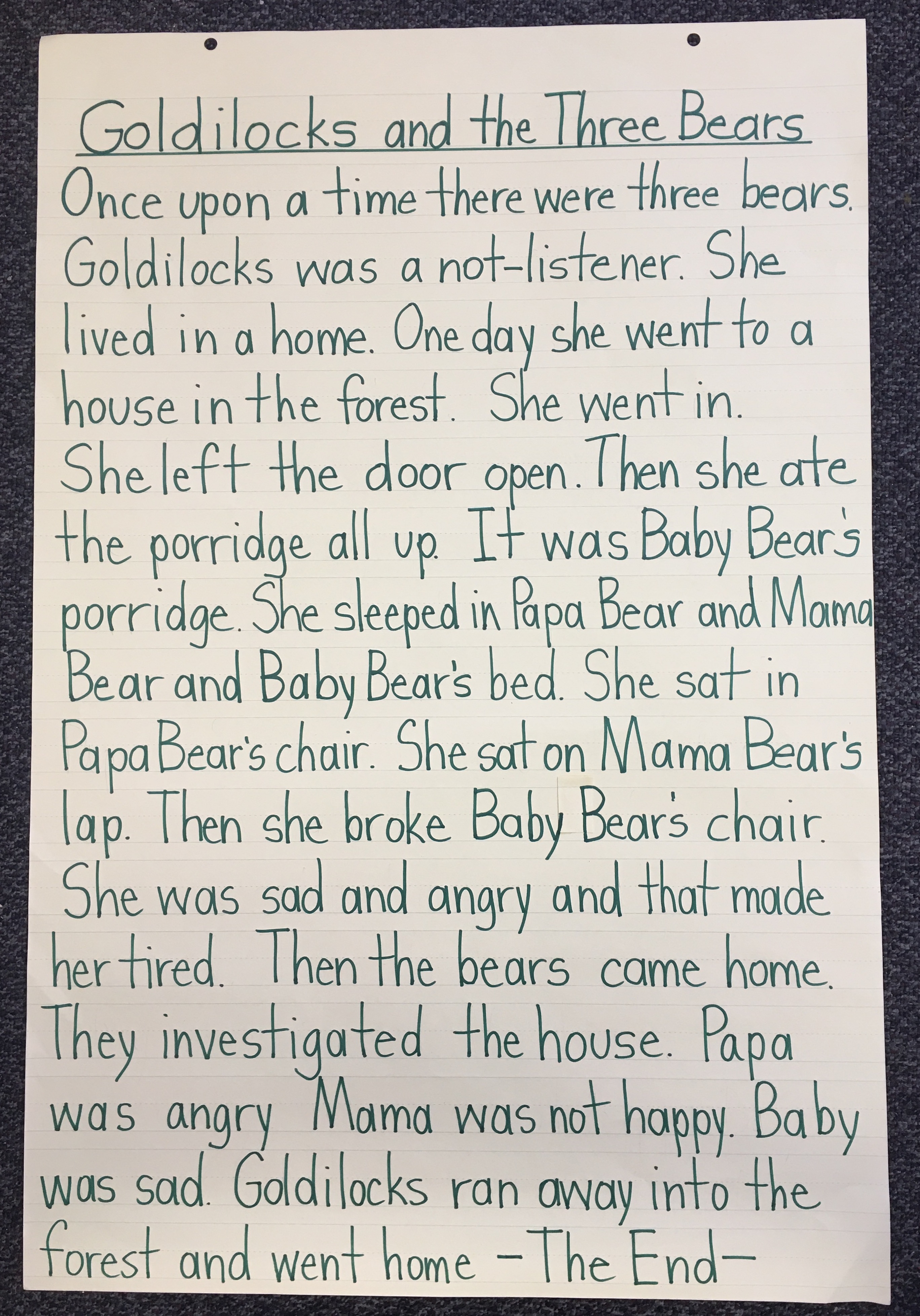 Ah-ha!  Children went from a deep understanding of a classic fairy tale to one with sophisticated humor.  Yet, they wanted more.  So, we wrote our own version of Goldilocks and the Three Bears.