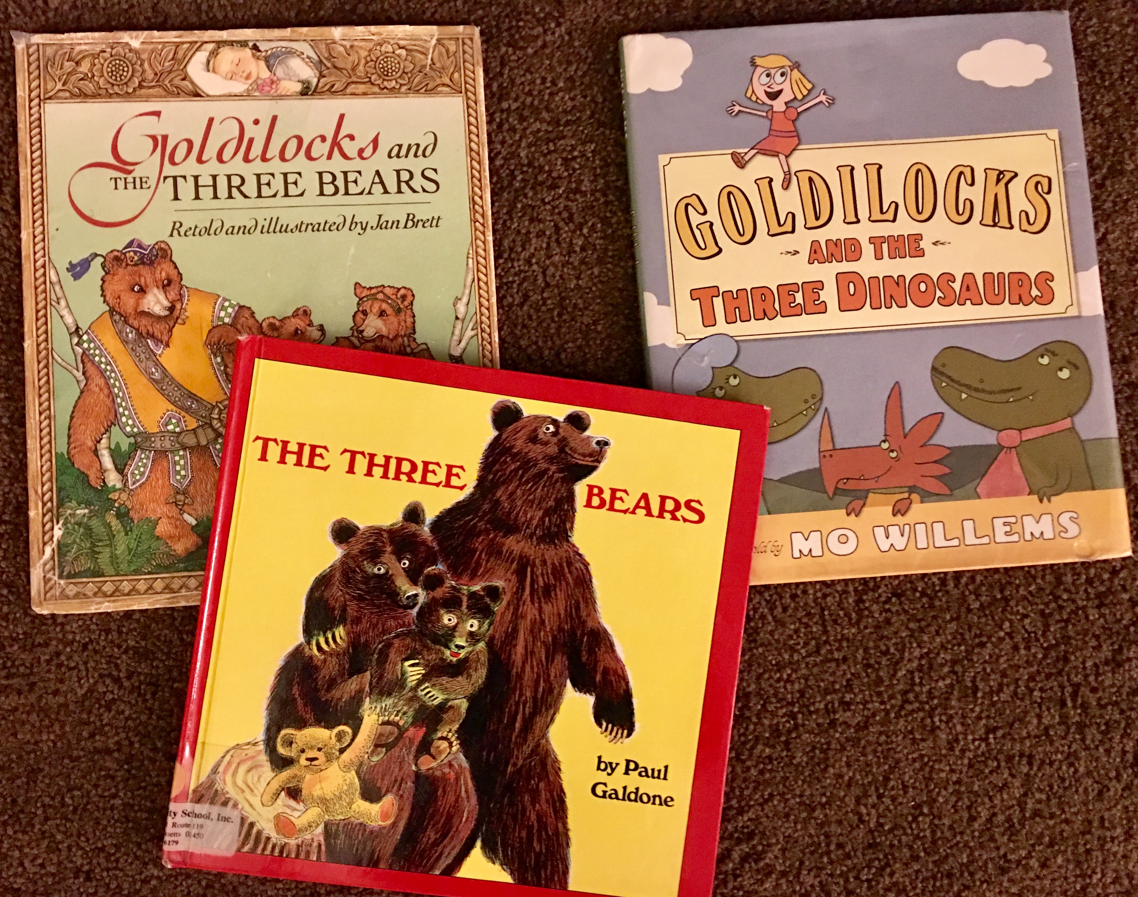 We read multiple versions, with books by Jan Brett and Paul Galdone being the favorites.  We debated Goldilocks; not if she was good or bad, but far more.  Why did she not listen to her mother and go into the house of the three bears?  She opened the door  on her own! The “W” questions (who, what, when, where, and also how) trigger the deepest discussions.  Oh, how I love seizing that moment.  When I read-aloud I stop.  All the time.  The best learning happens spontaneously.