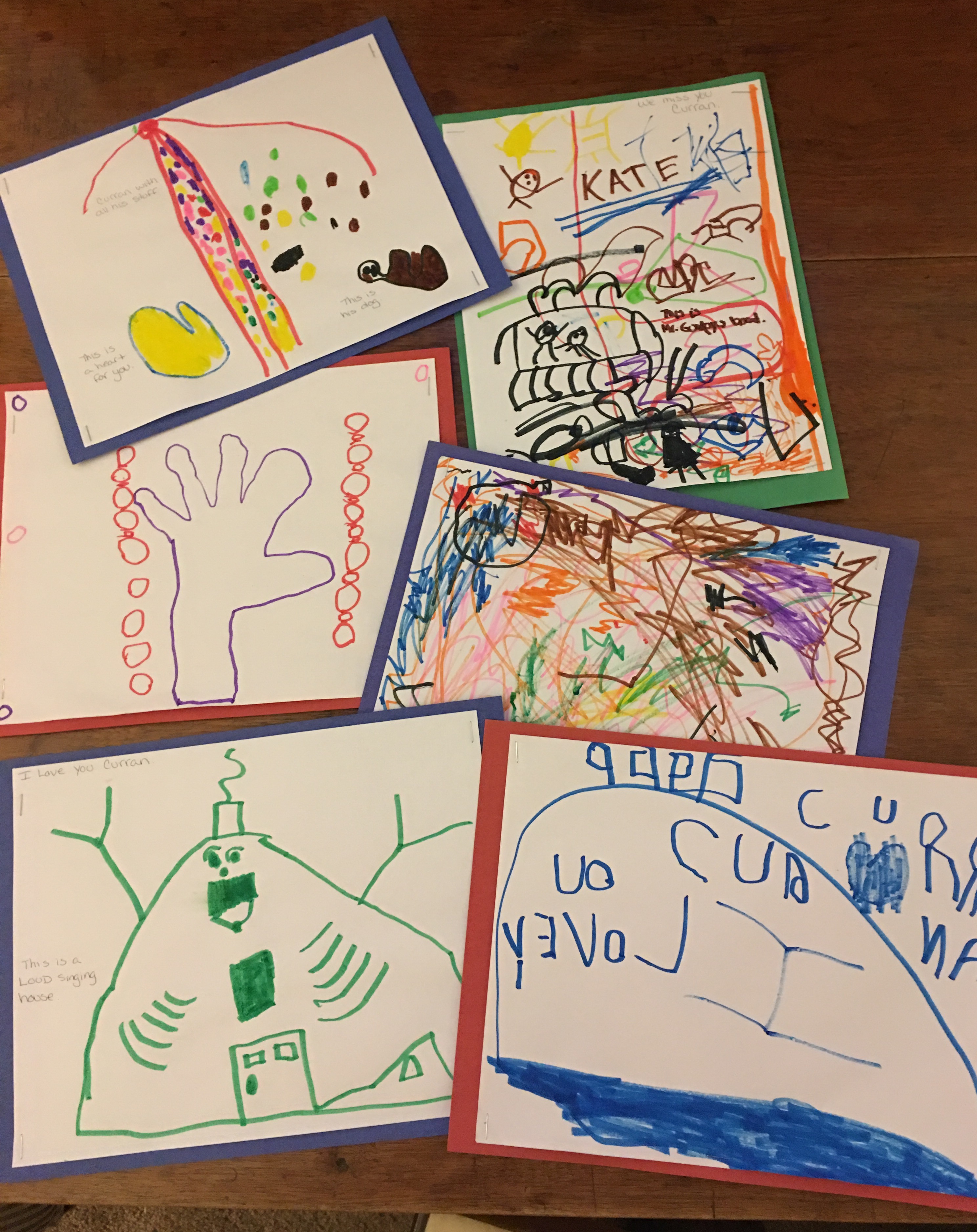 For children, expressing their thoughts in words and drawings is age appropriate and very genuine. That is exactly what we did for Curran. After we wrote and decorated our big letter, we drew him individual pictures.
