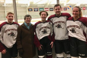 I was invited to a high school hockey game by one of my former preschoolers.  Lucky me, and what a special treat.  She’s on the team.  It turns out that the hockey team has many more of my preschoolers.