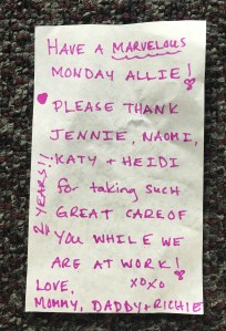 Thanks, Will. They don’t send in notes often, but when they do they’re pretty special. It is very hard to say goodbye to children who have been in my class for two years, especially those who are as wonderful as Allie.