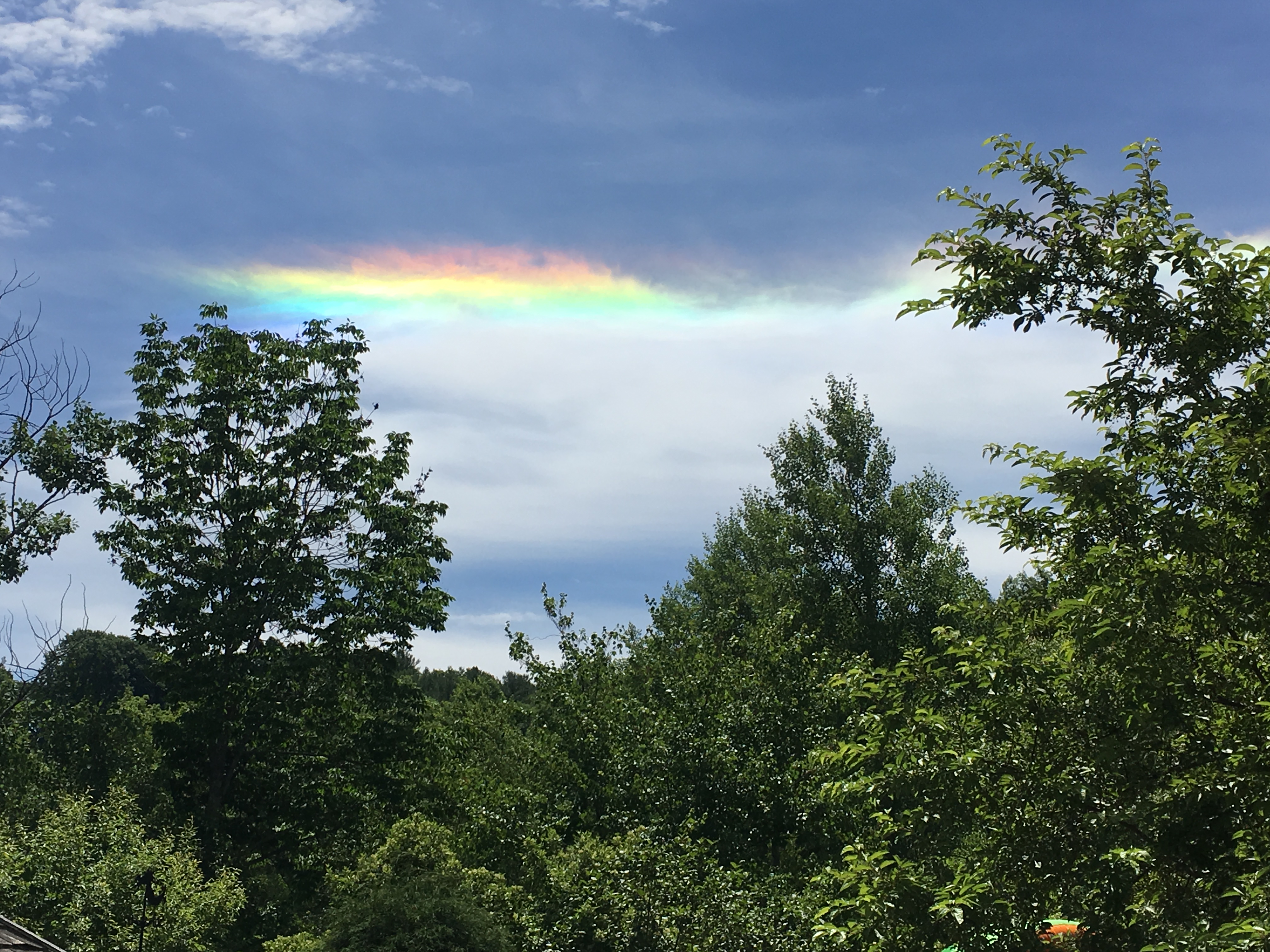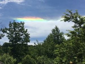 We were on the playground today, and children saw this beauty across the way.  “It’s a rainbow!” It isn’t an arc, and it hasn’t rained, so it cannot be a rainbow.  Mother Nature was smiling with colors and saying hello.