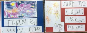 Again, children made all the decisions as to what would go where.  Milly was there to watch.  They colored the big sketch, which reinforced the words to the song, and reinforced what they wanted.  It was their ‘statement’ and they were proud.