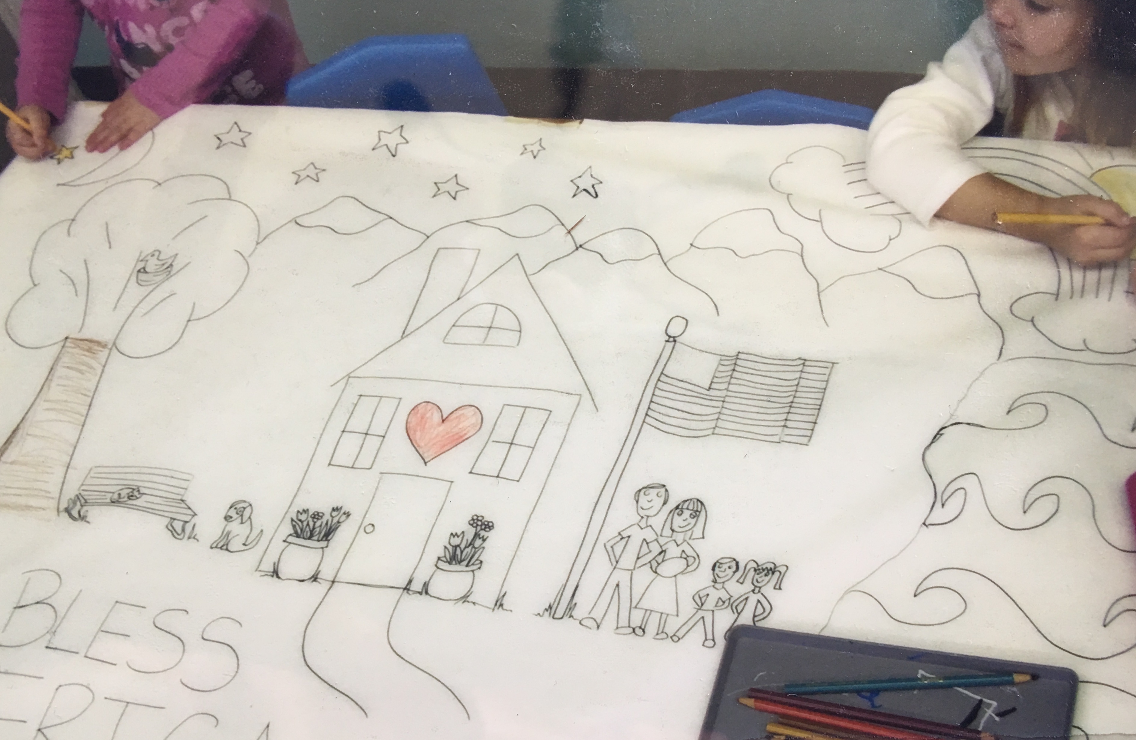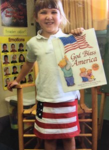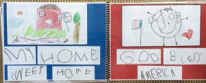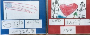 When the holidays were approaching, I had this pit in my stomach.  I just felt like I was giving hungry children little bits of food instead of a big meal.  So, I decided we would make a God Bless America book for families as a holiday gift.  This would be our own version, based on Lizzie’s favorite book.  What a treasure this book became!