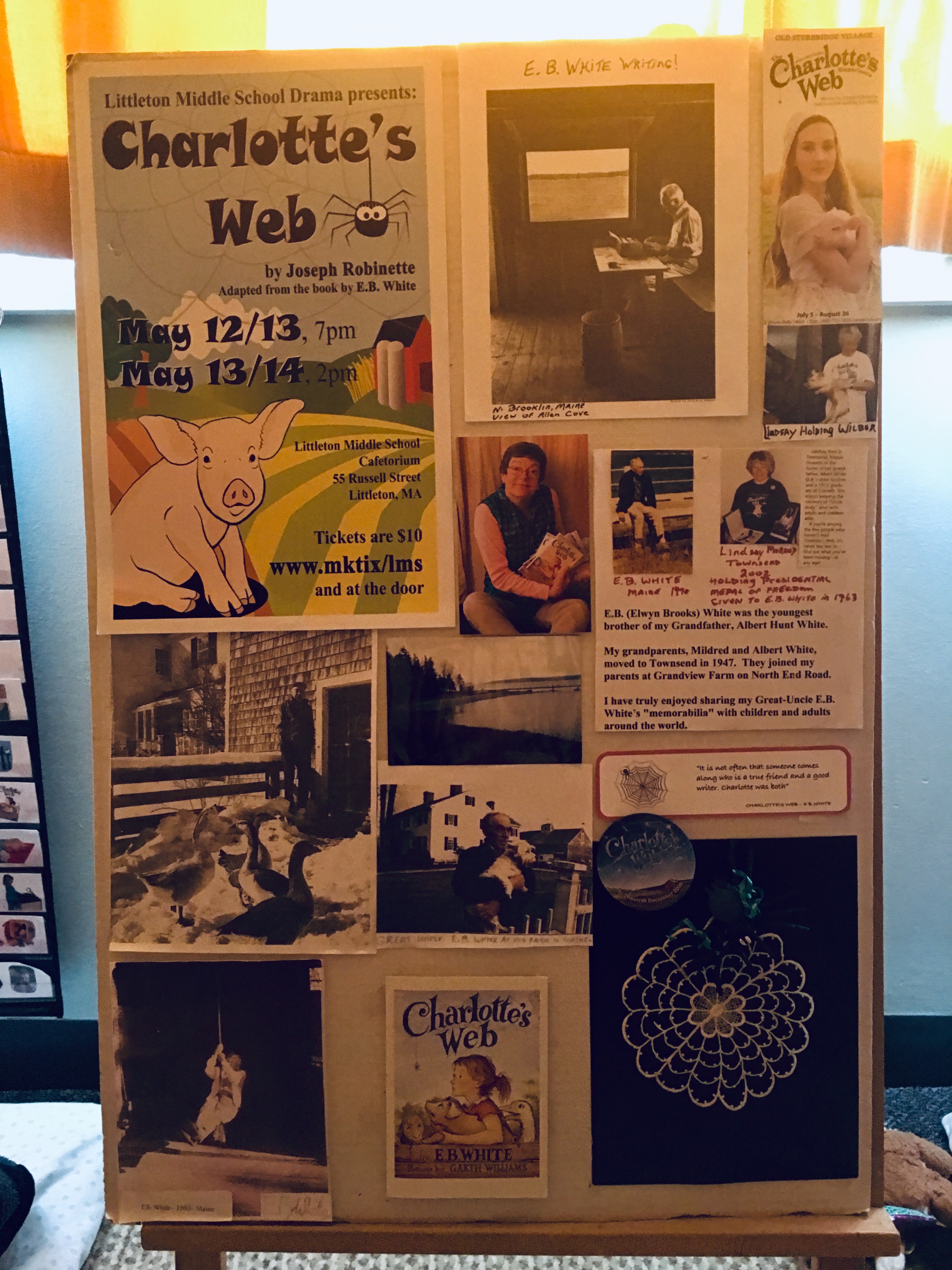 When I visited the library after my travels, the head children’s librarian was beside herself to tell me about the event.  She was even more excited to tell me that E.B. White’s grandniece wanted to meet me.  Me!  In the words of Charlotte, I was HUMBLE.