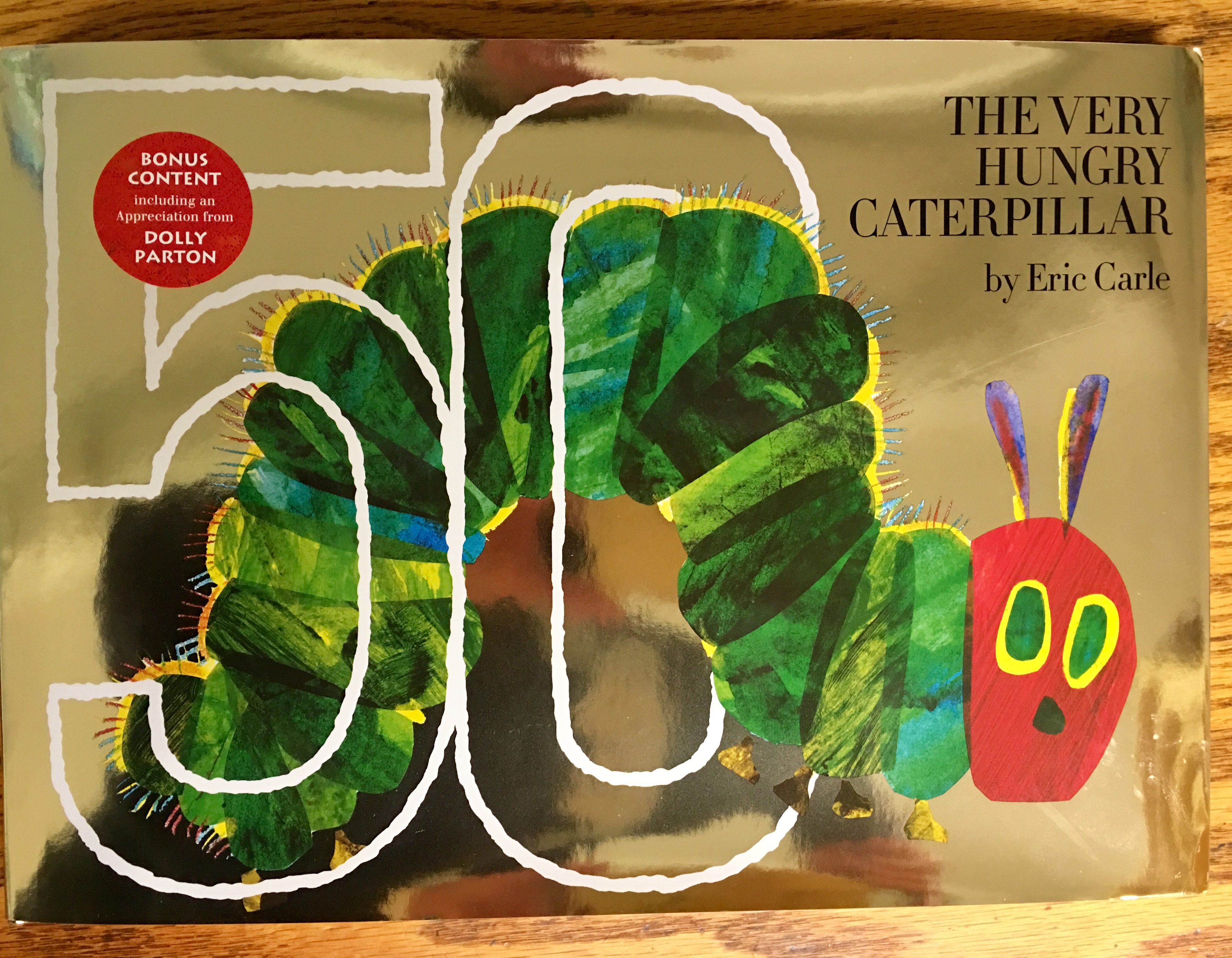 Fifty years.  That’s a very long time.  For a book to still be alive, vibrant, and read all over the world – fifty years later – is astounding.  The Very Hungry Caterpillar by Eric Carle is celebrating it’s 50th anniversary this year, with a golden book jacket.