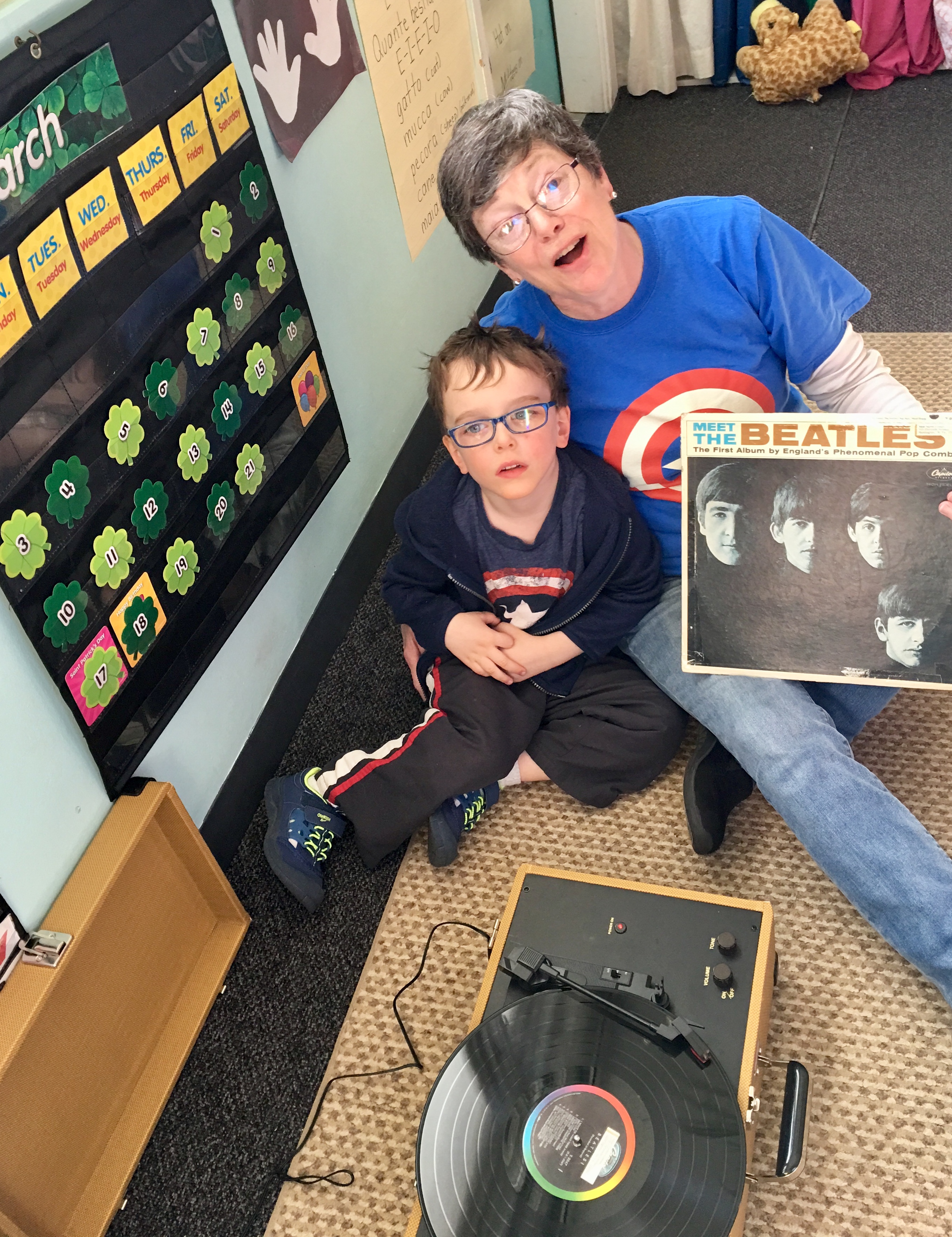 This is as good as it gets.  I’m giving a child a song he wants to hear.  I’m introducing music on a record player.  I’m playing some of the best music from my teenage years, and the children love it.