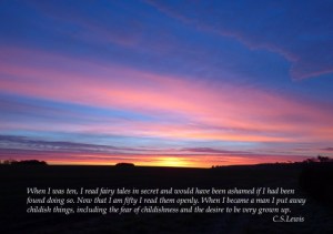 Thank you Sue Vincent for posting this a long time ago.  It has stayed with me.  I want to keep these words alive.  Read fairy tales with abandon.  Read them out loud.  They have far more wisdom than we realize.  Sometimes it takes us until we’re fifty to truly understand.  C.S. Lewis got it.