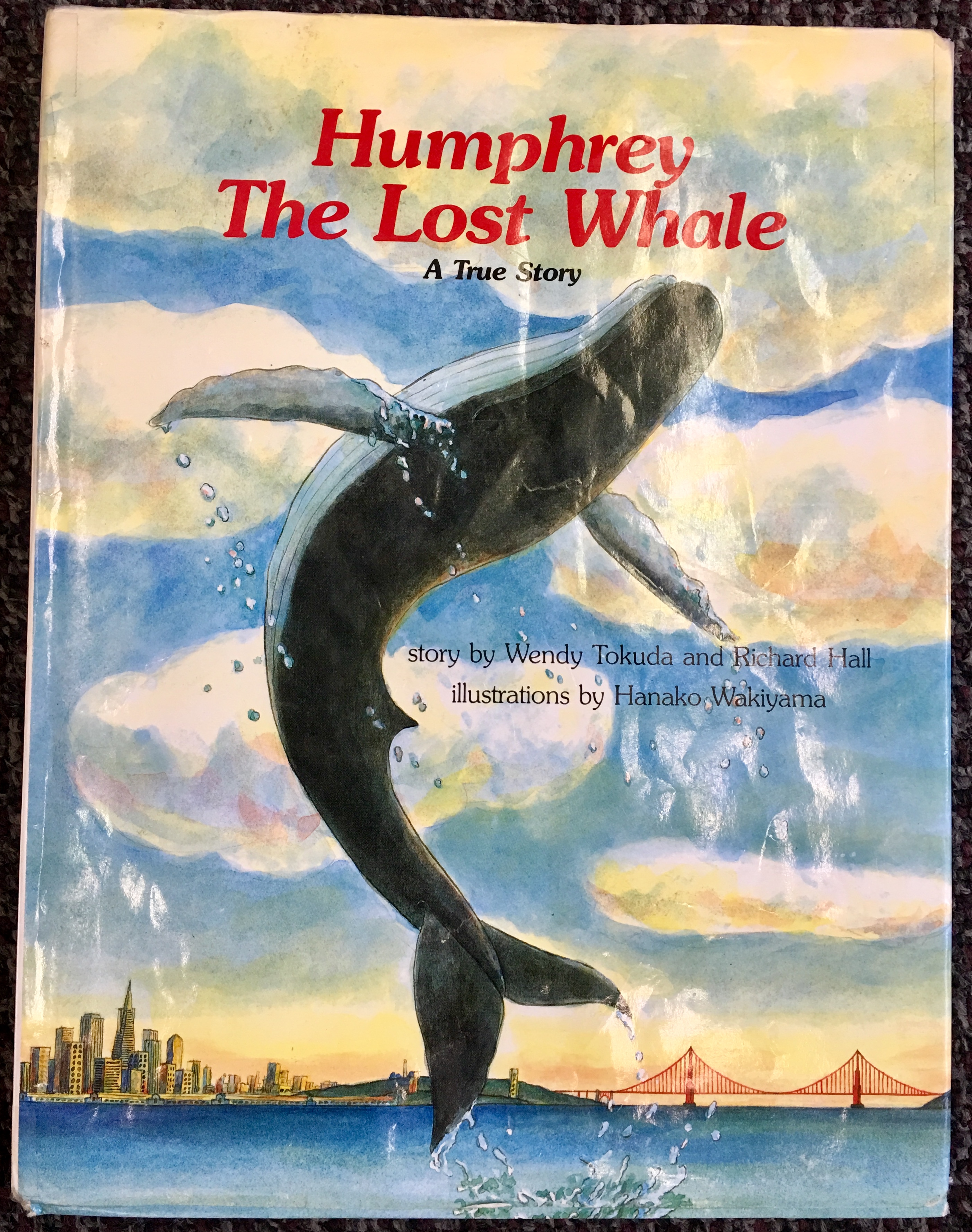 This is a true story of a whale who got lost in the San Francisco bay and swam the wrong way, heading up the Sacramento  River.  As the river narrows Humphrey somehow swims under a small bridge and becomes trapped.  He won’t survive long in fresh water.  Scientists come up with a clever plan to make Humphrey turn around and swim back to the ocean, but the danger is far from over.  The illustrations bring to life the geography of the Golden Gate Bridge, and the pathway of ocean to bay to river.