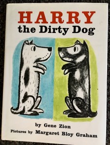 Harry is a white dog with black spots who hates a bath.  After burying the scrubbing brush in the backyard and running away from home, he plays in the dirt and becomes a black dog with white spots.  How will he convince his family that he is really Harry, a white dog with black spots?
