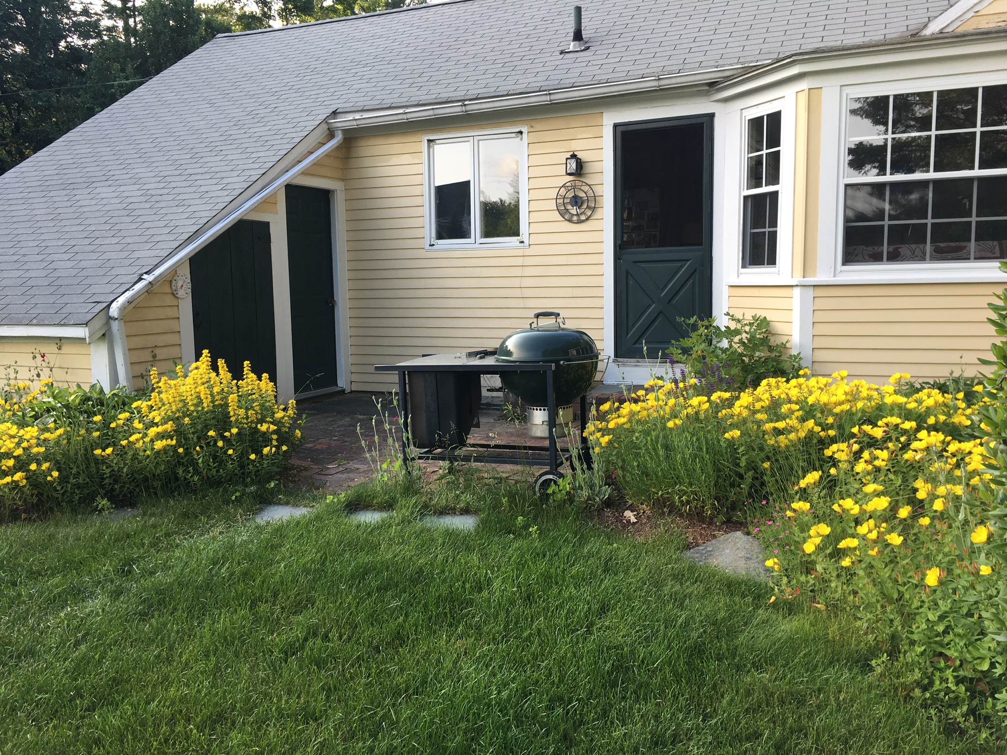 What a lovely house – and a super garden! I love the stand of lovely bright yellow flowers… what are they?