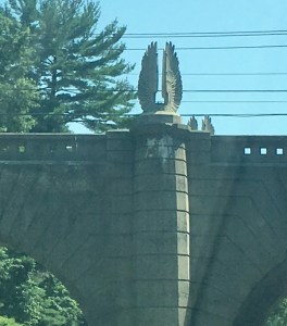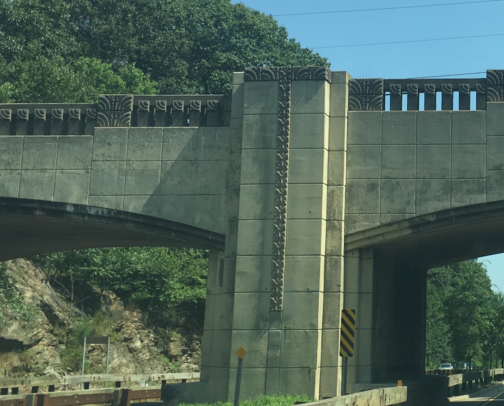 Every bridge along the Merritt Parkway in Connecticut is 1930’s Art Deco.  Each bridge is different, and a piece of art.  I had my iPhone on the dashboard of the car, hoping to capture some beauties.