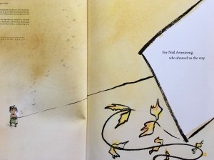 It’s been thirty-two years since Owl Moon was published. Yet, 2019 was just the right year for this book, A Kite for Moon. Fifty years ago, astronauts landed on the moon. Neil Armstrong made the event famous with his words. Jane Yolen makes the event more meaningful by writing what may have inspired many children like Neil. “A very small boy was flying his kite on the beach near his house. He looked up, at the moon.”