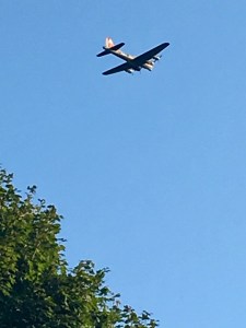 It’s not everyday that a WWII plane appears out of nowhere, overhead, in my own backyard.  It was enormous! Hubby thought it could be a B-24 or even a rarer B-29 Superfortress.