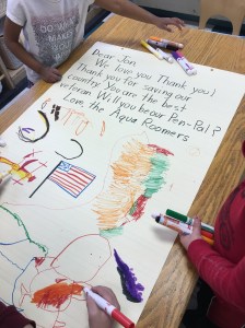 Some years we have invited members of our military into the classroom to say thank you.  Other years we have reached out across the world to say thank you to our military serving overseas.
