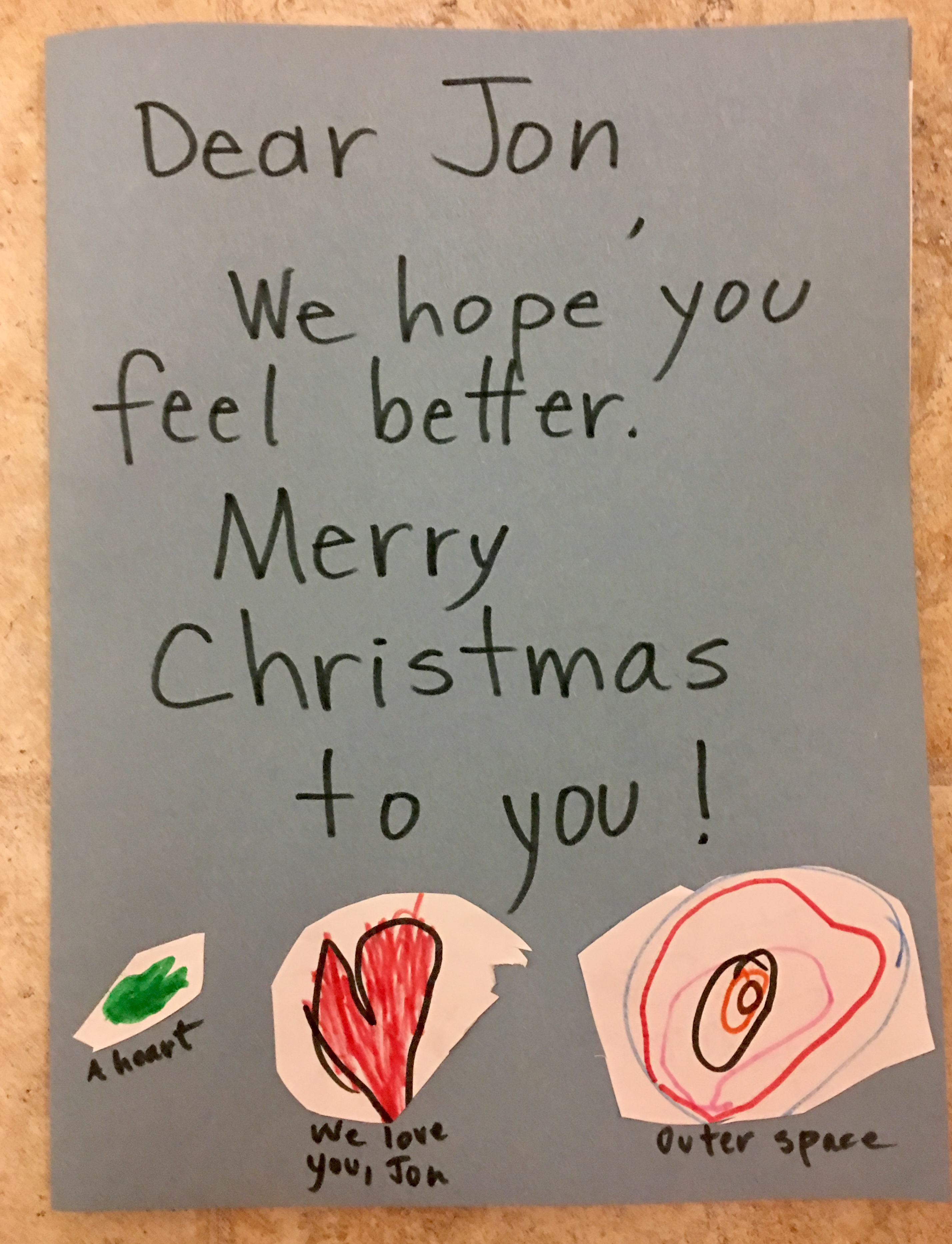 Somehow, illness at Christmas seems worse than at other times. Your children knew best how to send Jon some Christmas cheer.