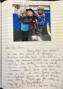The Spar family was lucky to have Gloria spend the holidays with them. It looks like she had a great time too. Happy New Year to Gloria and the class.