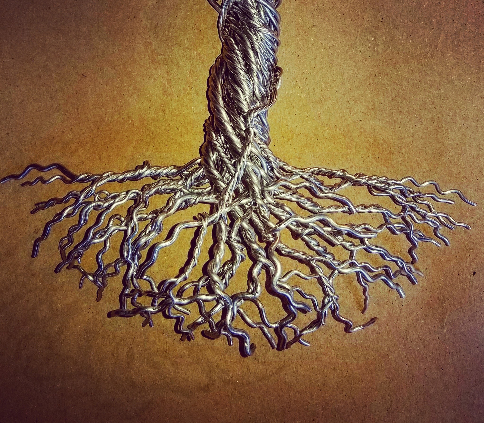 My artist friend at Mountain Roots Studio in Asheville, North Carolina, makes trees out of twisted wire.  Her trees have deep, pronounced roots.  I’ve always liked that.  Roots.  That’s where it all begins.  Without roots we have nothing.