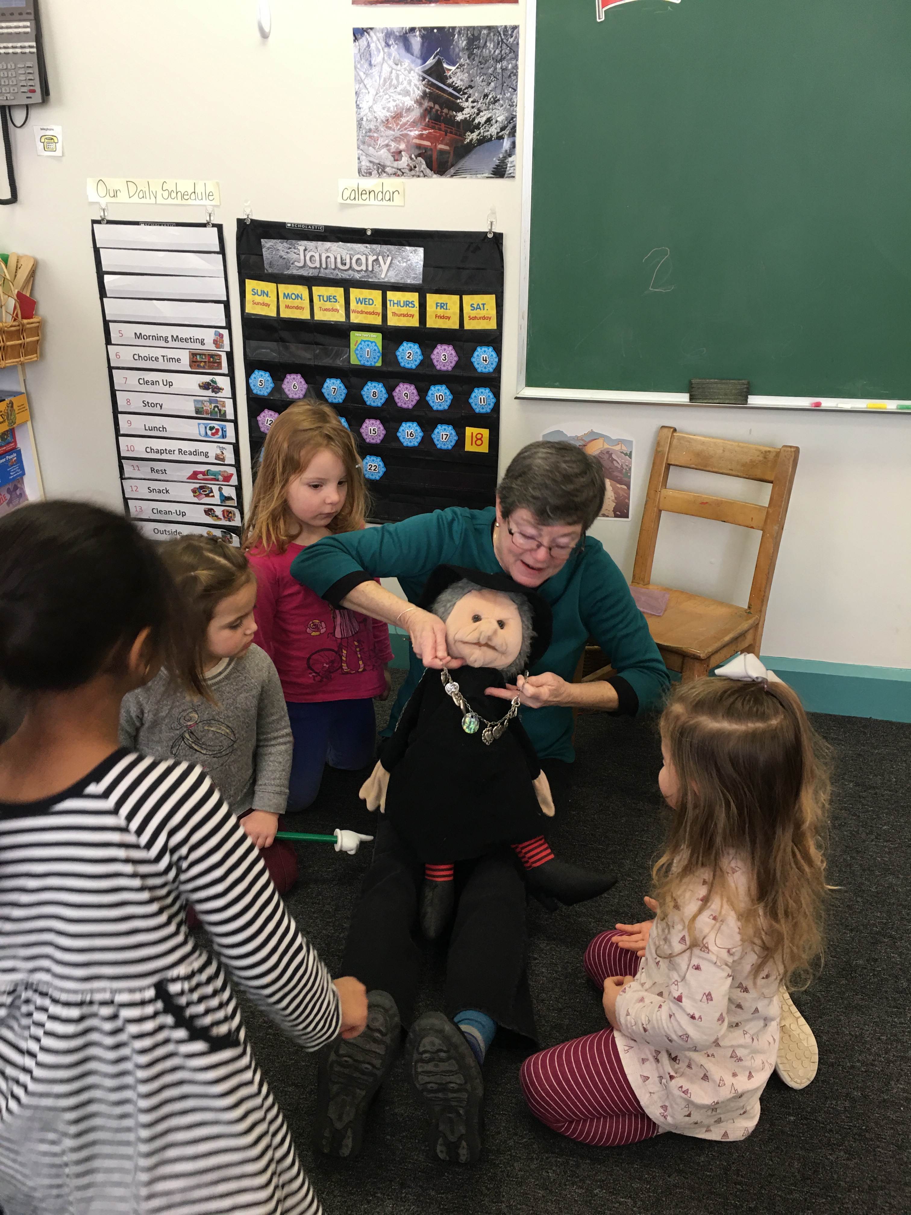 13. I had to chuckle about how you had to be quick with maneuvering Gloria as everyone wanted to touch the newly repaired necklace on her. No wonder it broke the first time. It’s hard for five-year-olds to just sit back to look and admire. Everything must be touched. Similar to the way babies have to put everything into their mouths to experience it, the Kindergarten kids are at the touching stage.