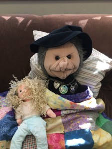 After Gloria got her new necklace, children decided she needed to be on the couch with her blankie and a doll.  I think Gloria liked that.  Don’t you?