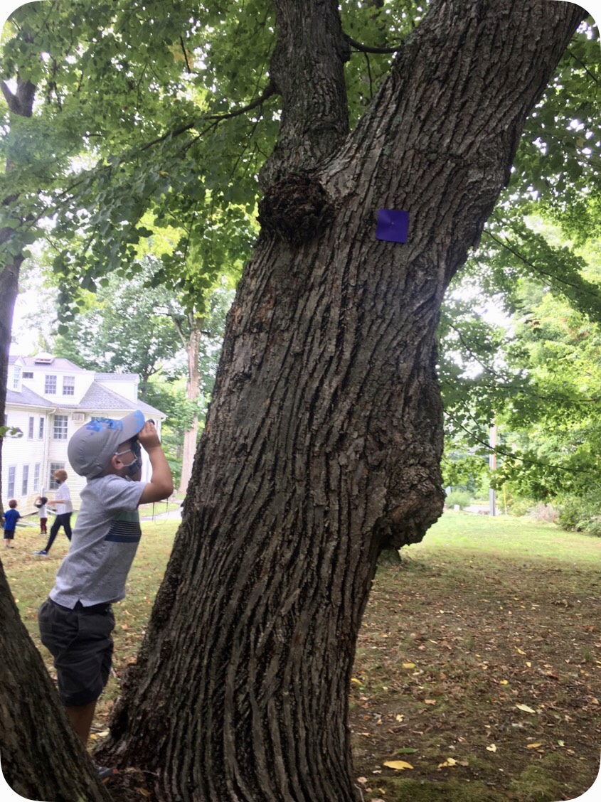 Our short walk to the Woodland Grove was an opportunity to use our tools.  There are shapes of different colors mounted onto trees.  We had to look hard to find them.