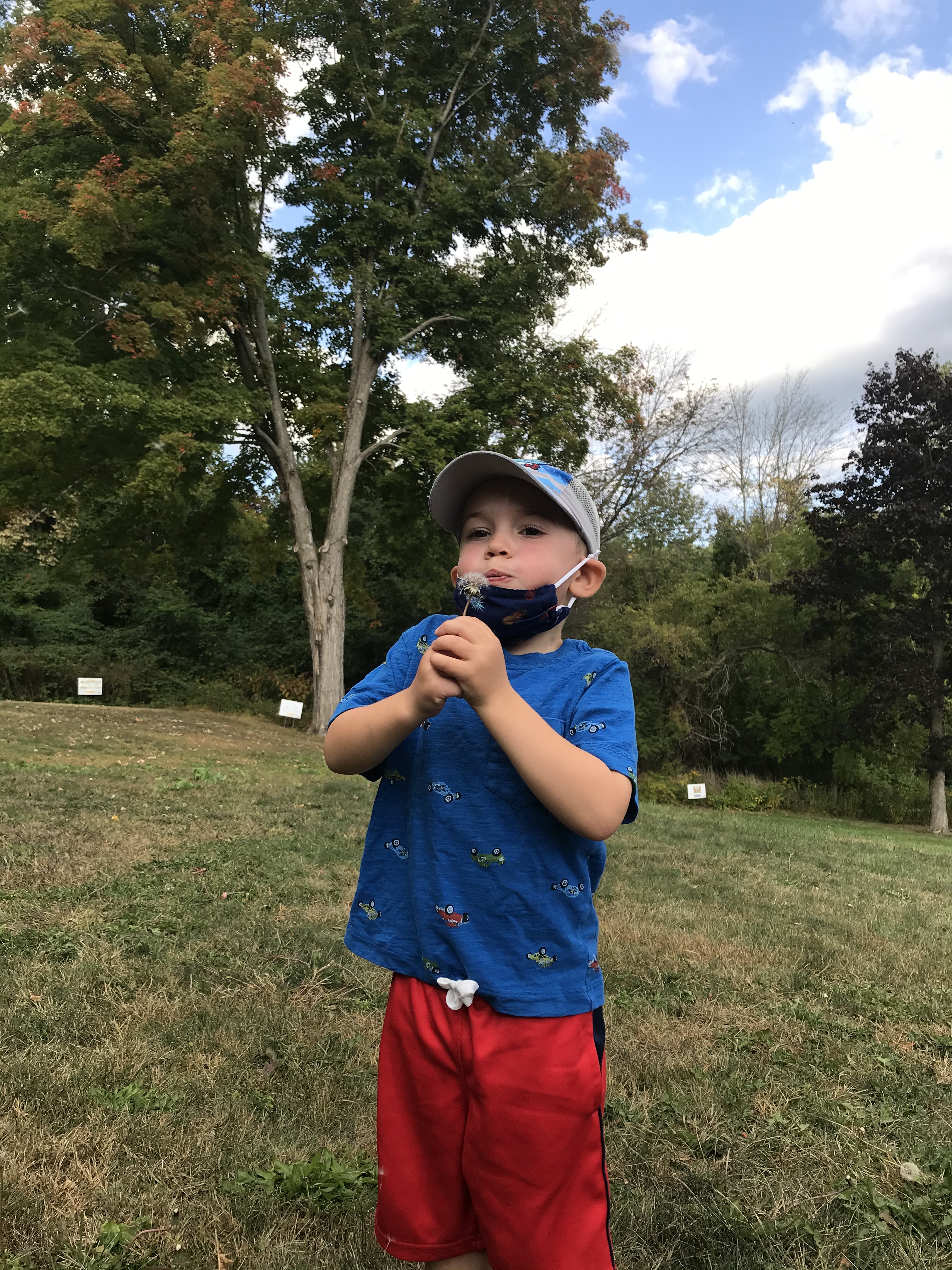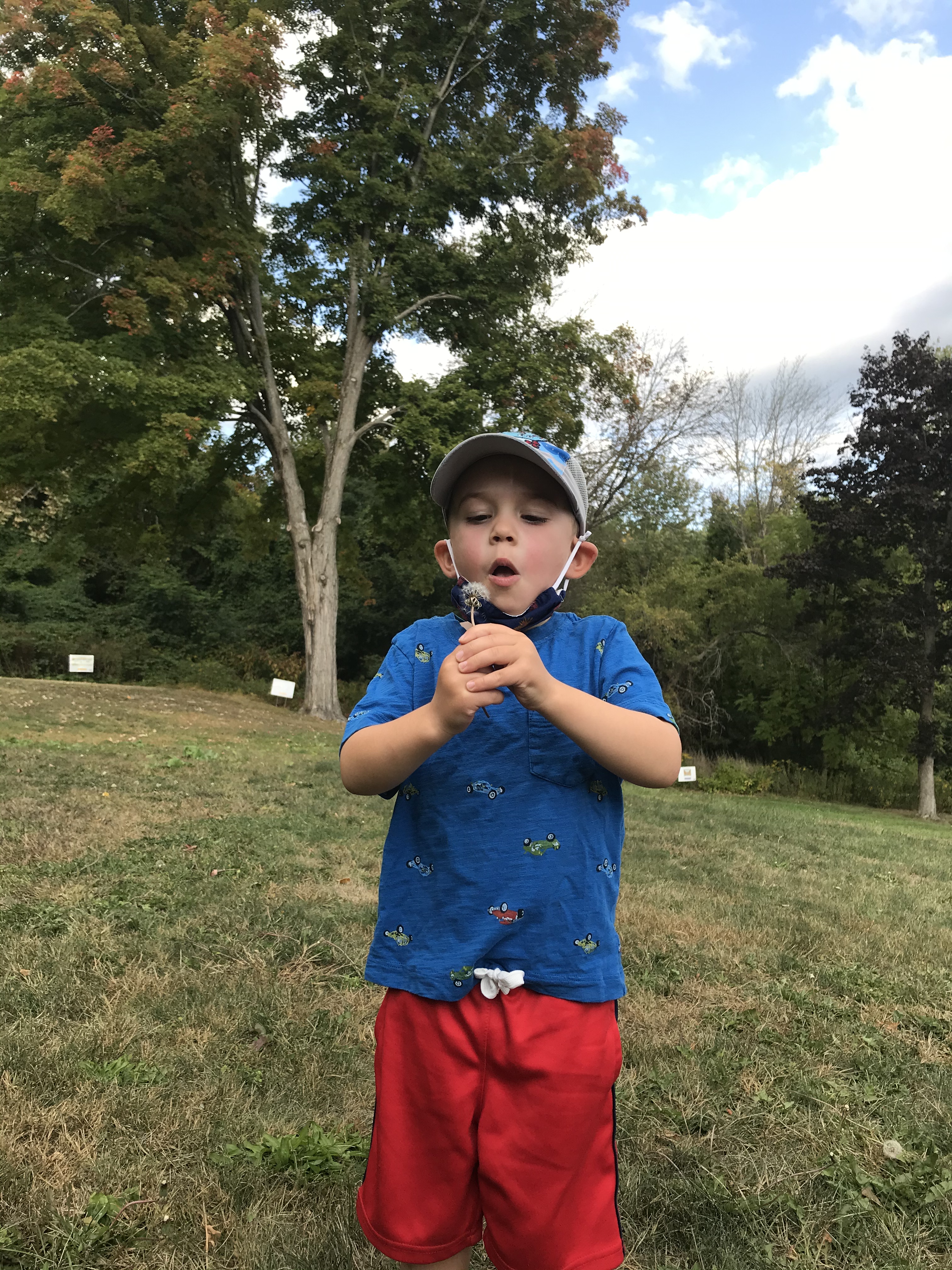Children blew dandelion seeds over and over again.  Big breath in, and blow hard!  This is not easy to do.  Do you know that blowing is excellent for oral muscle development?  The children didn’t know. They just had fun trying so hard to blow those seeds.