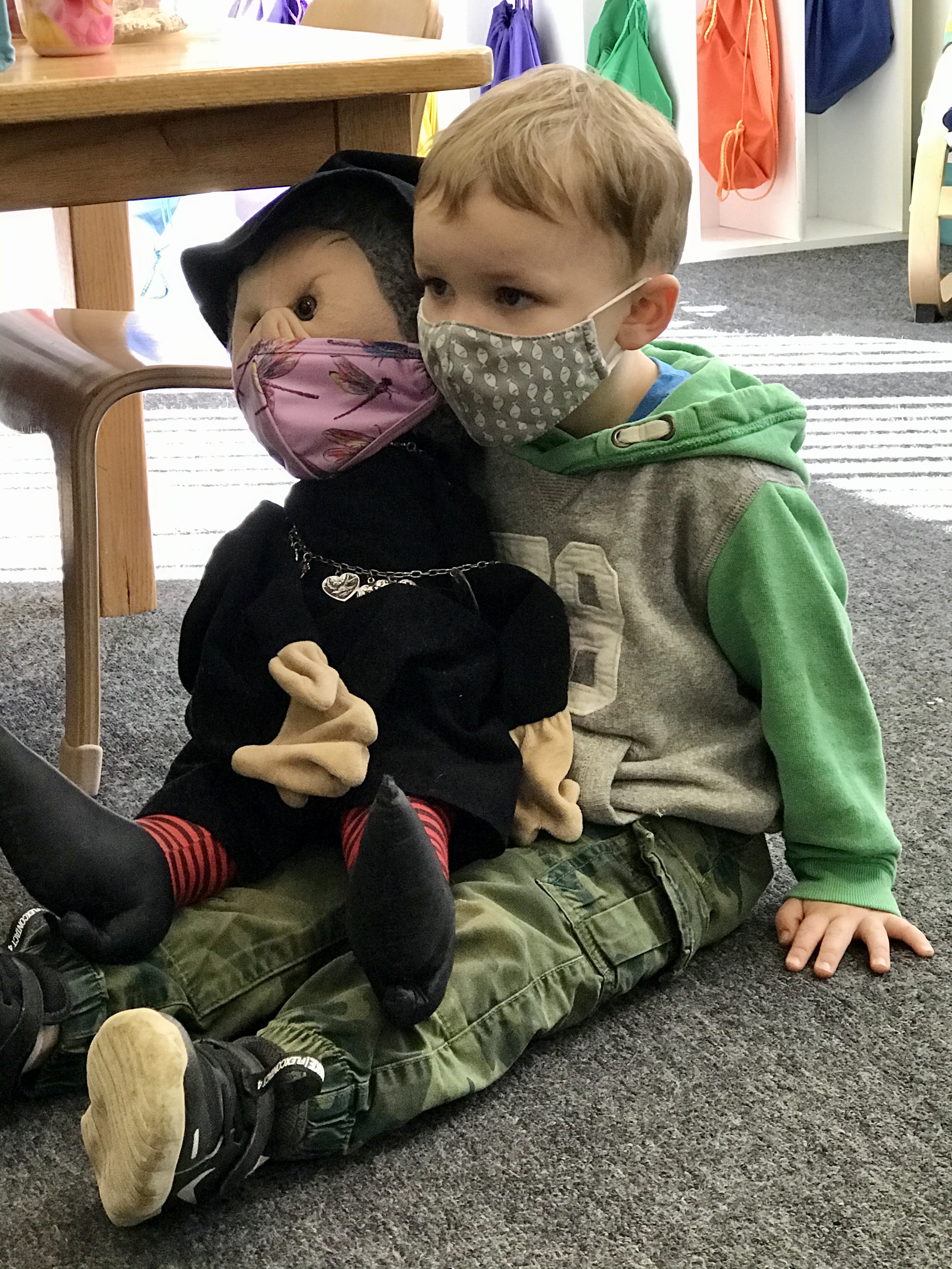 The kids are just fine with masks. It’s harder for teachers. I cannot read aloud to children with a mask on. For the sake of the story, it does not work. So, I make sure the children are six feet away and I pull my mask down to read aloud. The daily routine of masks off into paper bags for snack, lunch, and outdoor play is difficult but necessary. Some children cannot put on their masks. Everything takes longer.