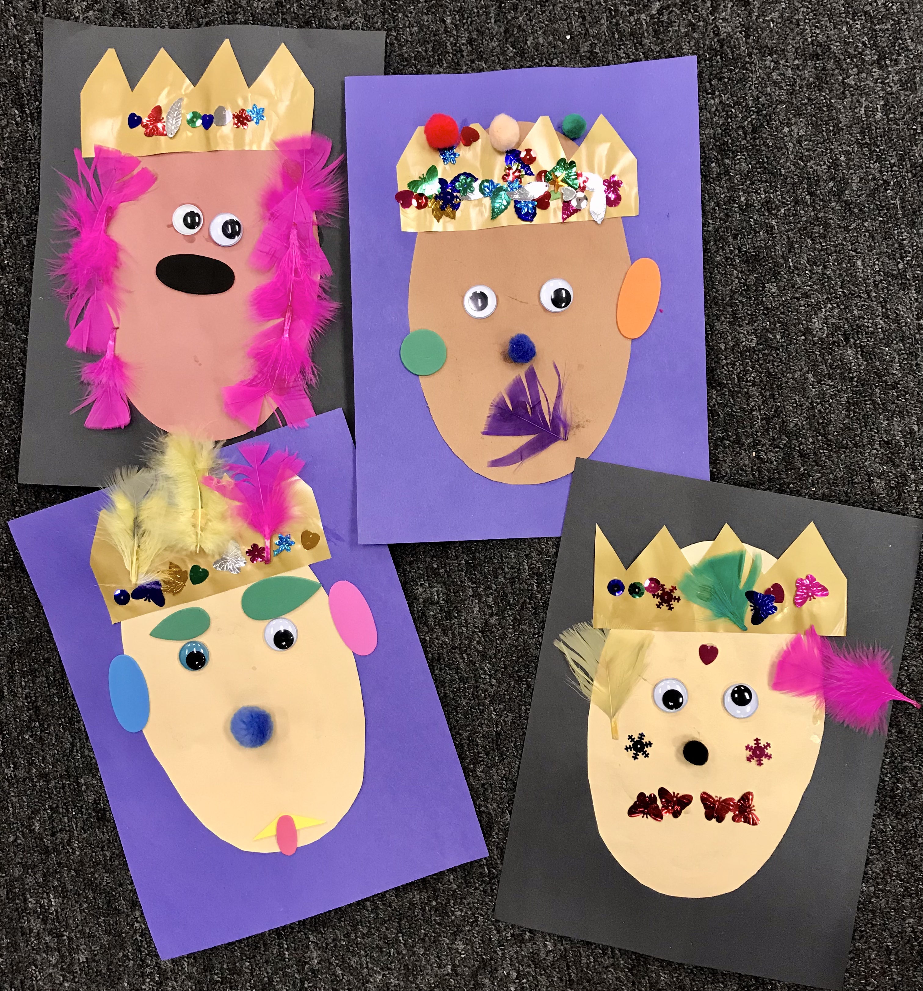 Although we played with castle blocks and used our imaginations to create our own picture stories, and make King and Queen portraits…