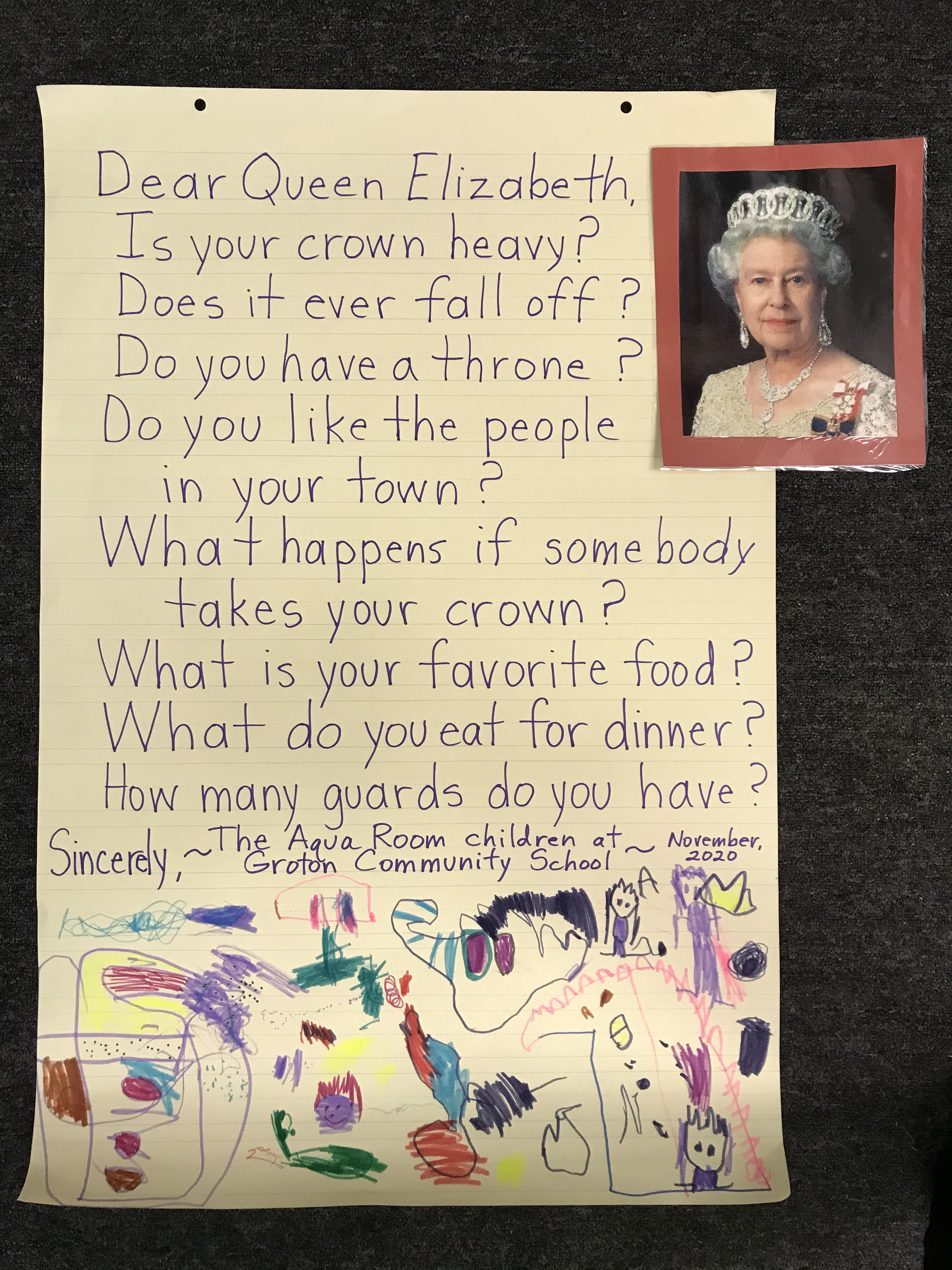 What a wonderful project. I think Queen Elizabeth would be happy to get that letter. Her staff would probably answer it too. Also, the letter to Pfizer is perfect. We sometimes forget that the children are concerned about the virus as well. Bless them and you, xo