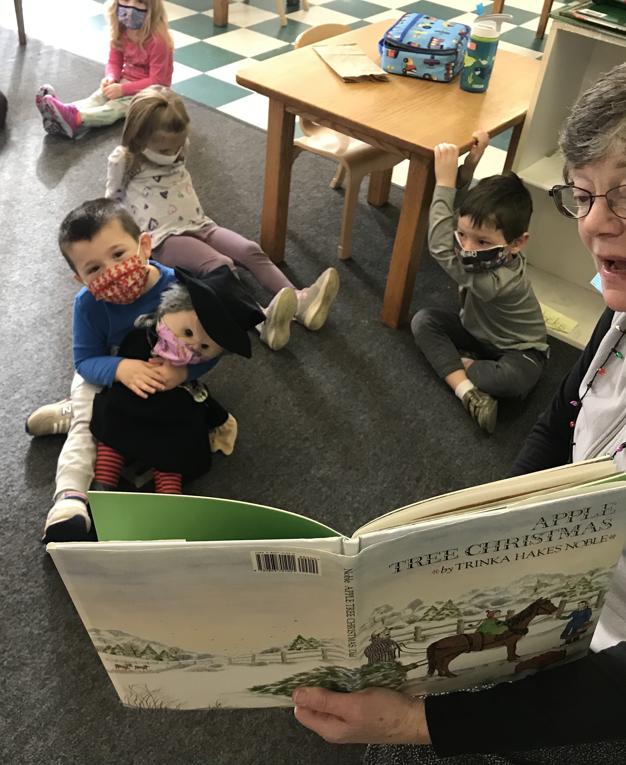 This was empowering.  Because Gloria is beloved, children listened and cared.  They understood.  They changed.  Gloria is an angel.  She joined us as we read a wonderful Christmas book, “Apple Tree Christmas.”