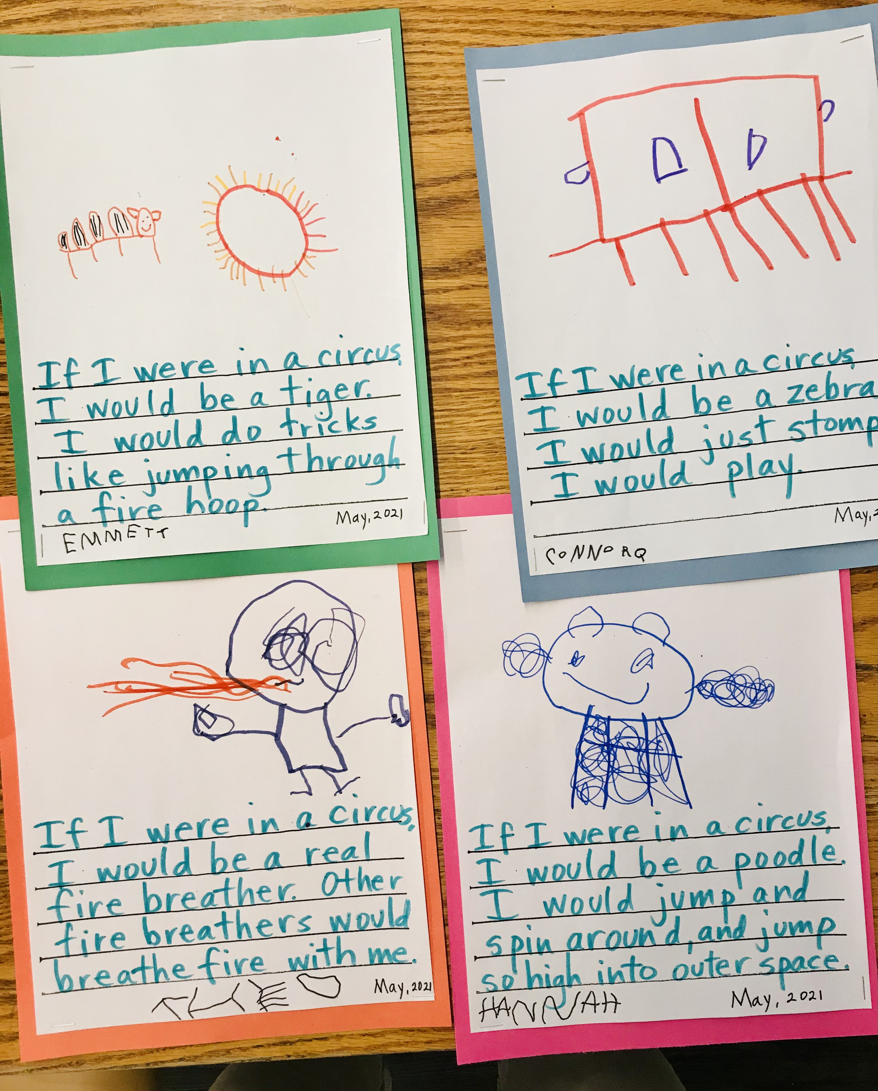 Children wrote picture stories about being in a circus.  “If I were in a circus…”