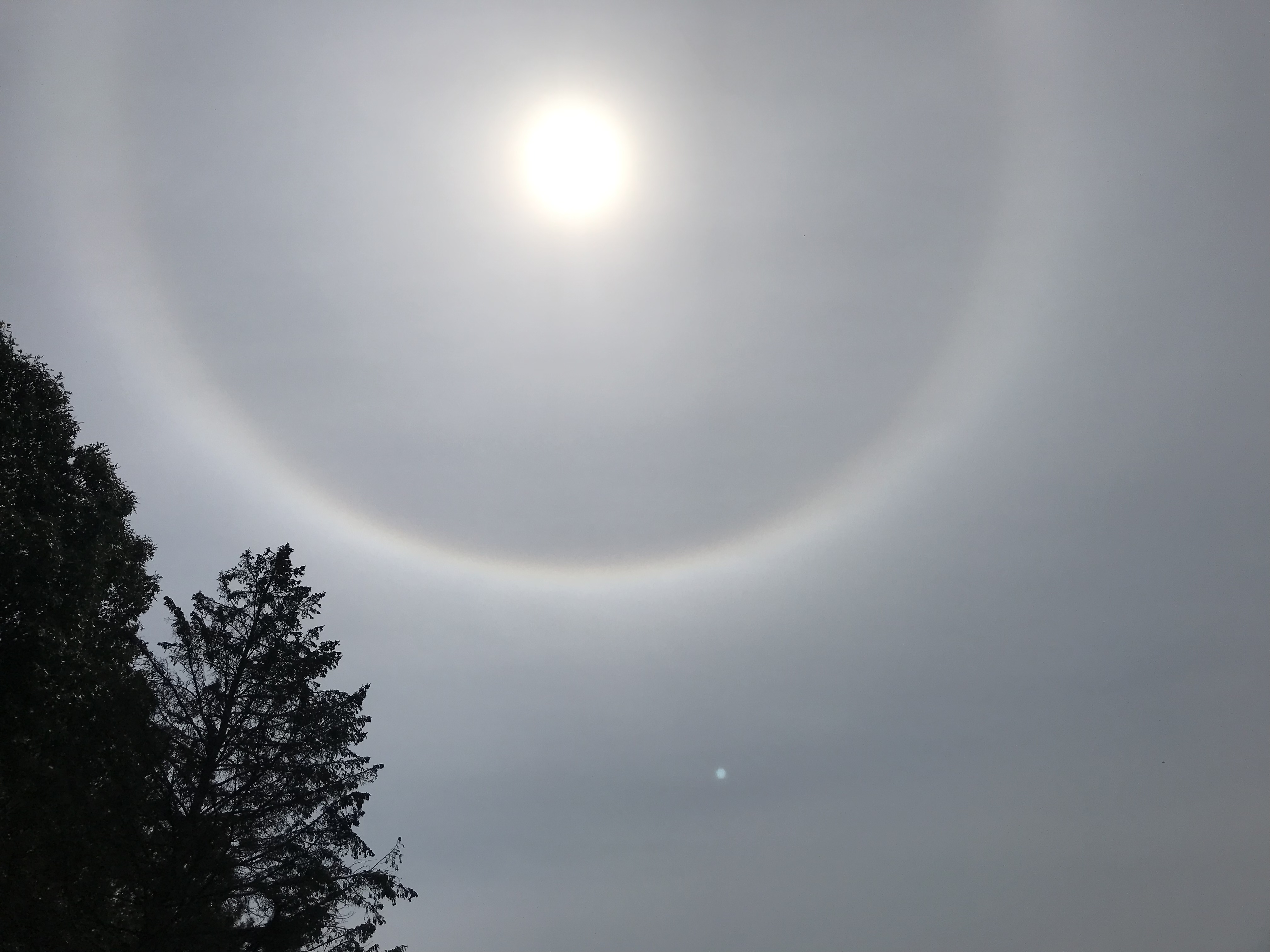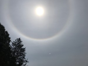 This was a first for me, Pete. I Googled it, and it’s called a sun halo. Apparently there are ice particles in the thin, wispy high altitude clouds. When light passes through the ice crystals it creates a circular halo around the sun. I love your description of my porch. Yes, home. Thank you!