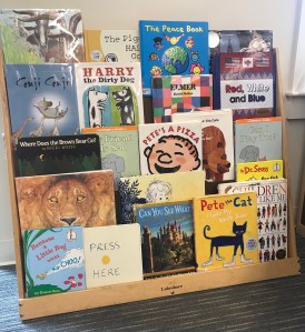 Reading books to children gives them the greatest foundation for learning.  It’s the most important (and favorite) thing I do for children.  Plus, it is exciting, fun, and develops a bond between teachers and children.  Nothing beats reading aloud!  Do you recognize the books on the bookshelf?  There is a mix of old and new, fact and fiction, patriotic, rhyming, and wordless.  The books rotate every month, plus there is always a ‘little bit of everything’.  And, nature is just a few steps away: