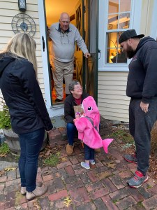 Love all the dressing up the kids do on Halloween. Pink baby shark is a cutey.