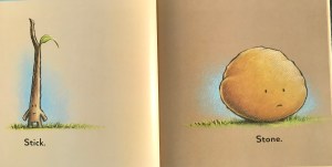 Stone is desperately trying to find Stick. There is a dramatic rescue. The rhyming text adds to the story, and to the emotions children feel. It is a classic for young children. It is a lesson, and a story they beg to hear over and over again. This is but a glimmer of the entire book. It’s a favorite in my classroom.