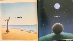 Trouble comes along. It’s a thunderstorm, and Stick and Stone are separated.