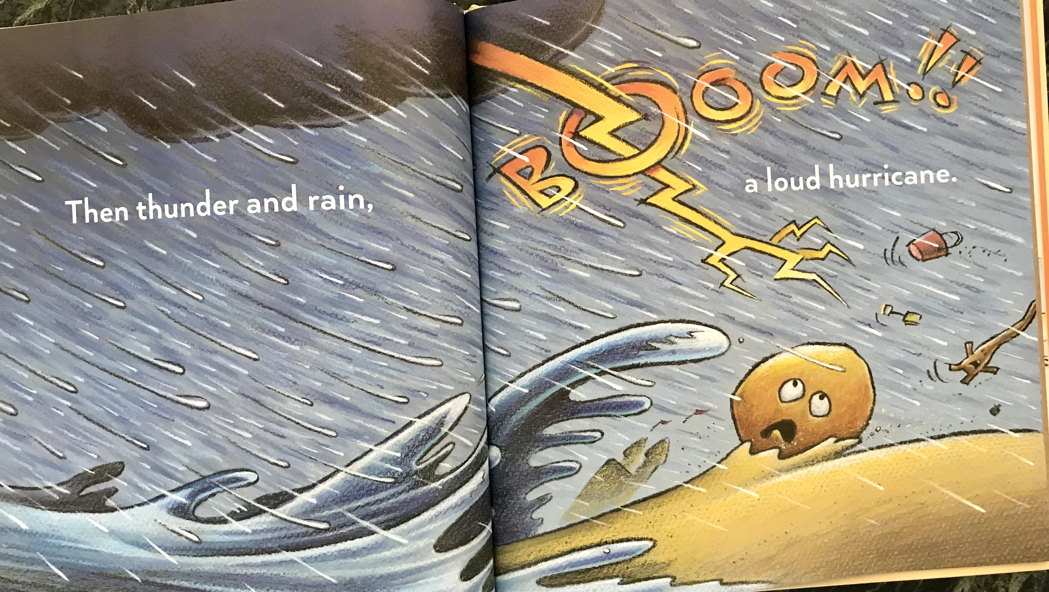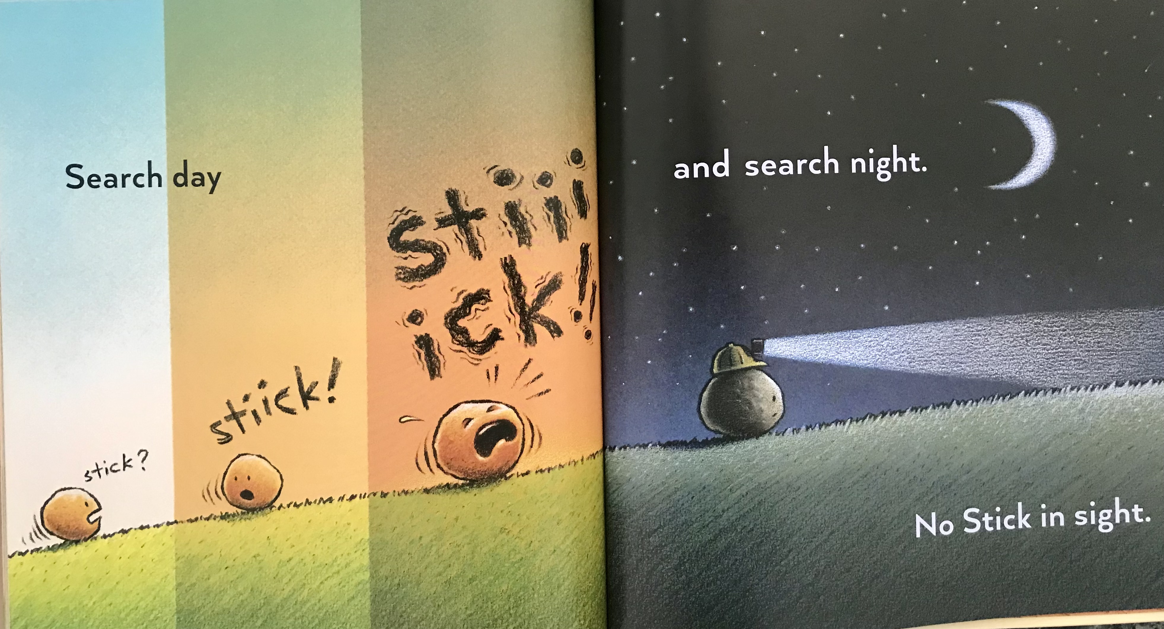 Trouble comes along. It’s a thunderstorm, and Stick and Stone are separated.