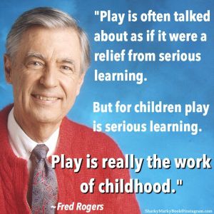 Mister Rogers said it best of all: “Play is often talked about as if it were a relief from serious learning.  But for children, play is serious learning.  Play is really the work of childhood.”