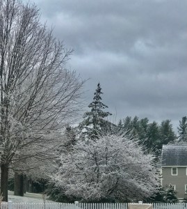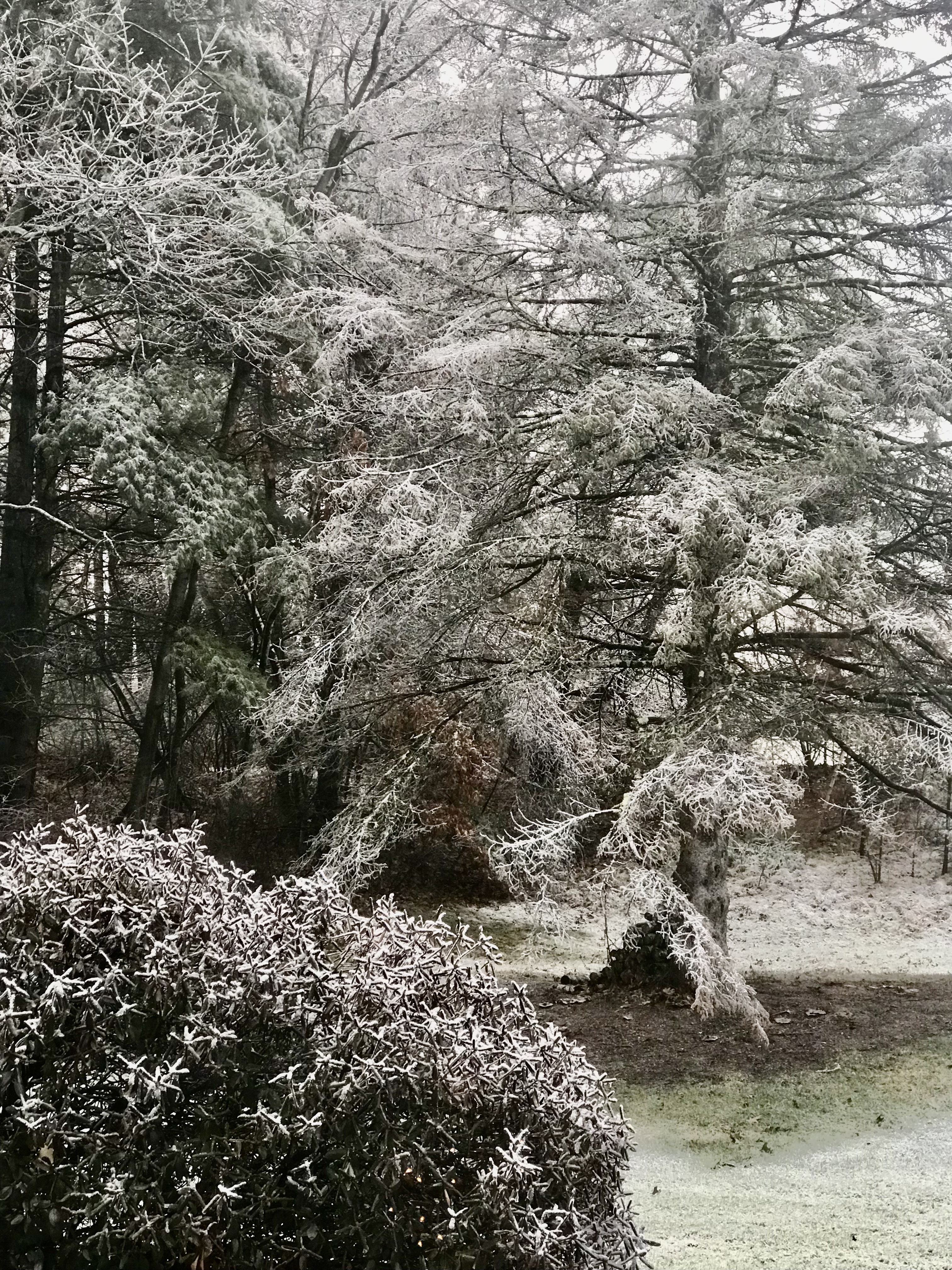 8. Our ice storm was yesterday. We awoke to a blanket of newly-fallen snow this morning.