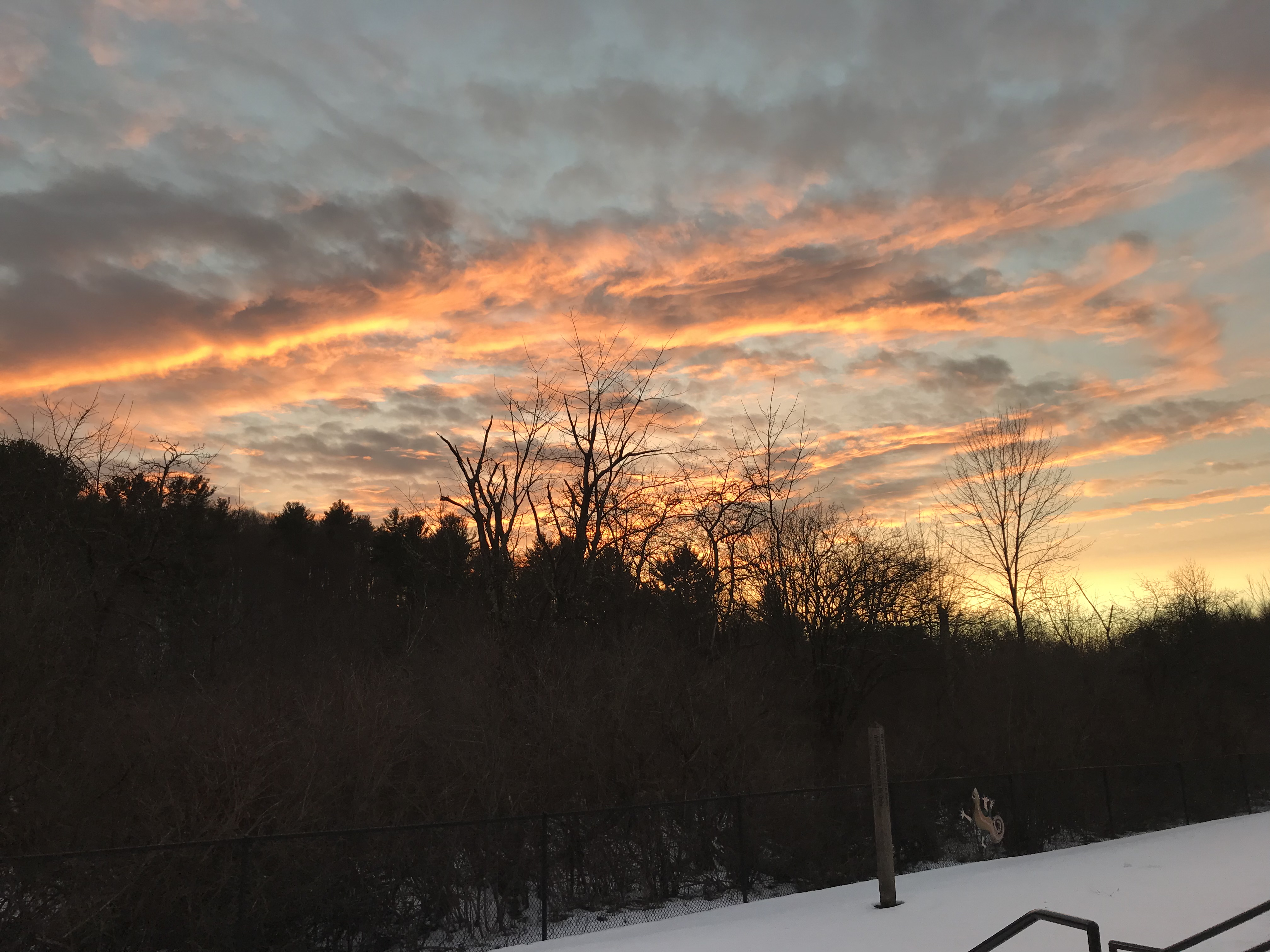 In New England, winter sunsets happen around 4:30 PM. This is today’s sunset at school. Typically we are outside on the playground at this time. Today we were inside. When I saw the sunset’s pink and yellow colors, looking out the classroom windows, we all went outdoors and watched. No coats, just us and the sky. It was cold, but no one cared. For a long time we were, well, ‘there’. A group moment doesn’t need words. There are never enough sunsets.