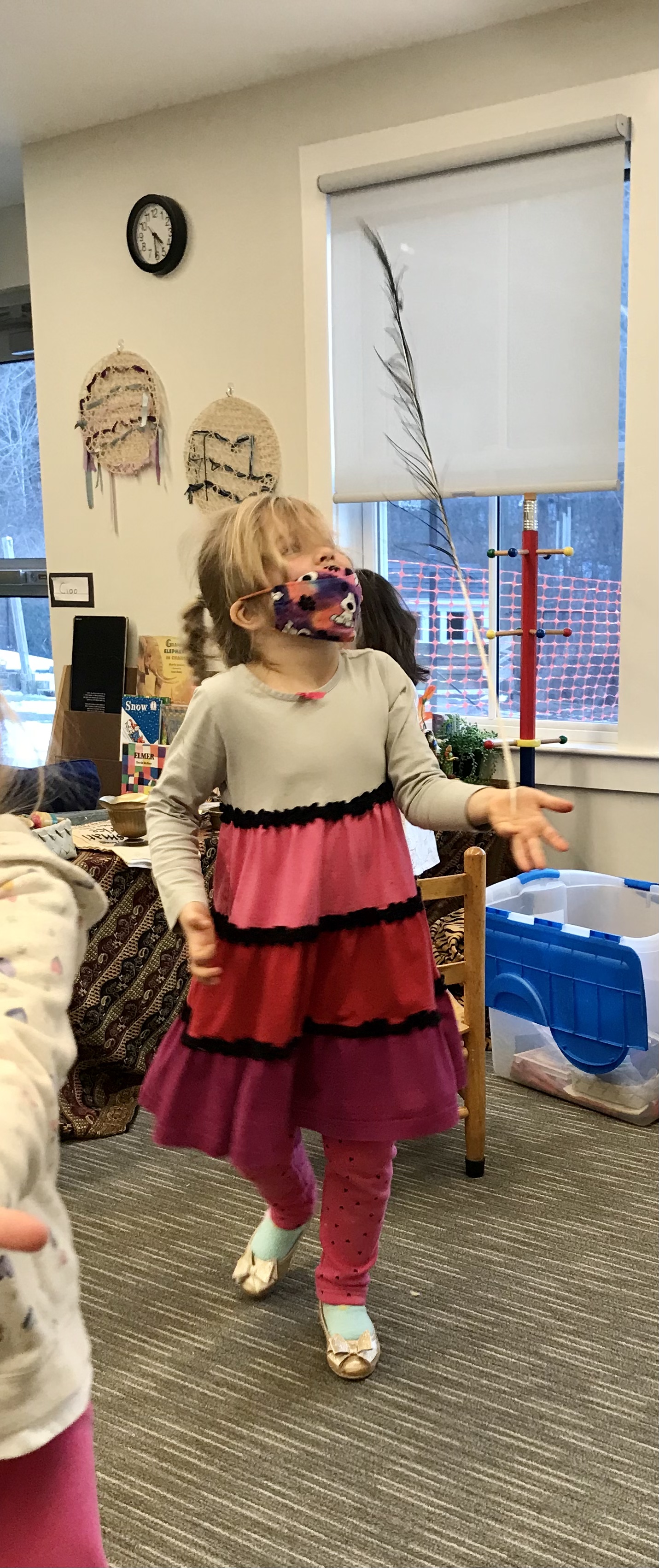 Children love this book!  We read it over and over again in January.  Our play performance was spontaneous and so much fun.  After all, when a book is popular (and good), I need to do more for the children.  In teacher language we call that ’emergent curriculum’, which means paying attention to what children love, and turning that into more learning.