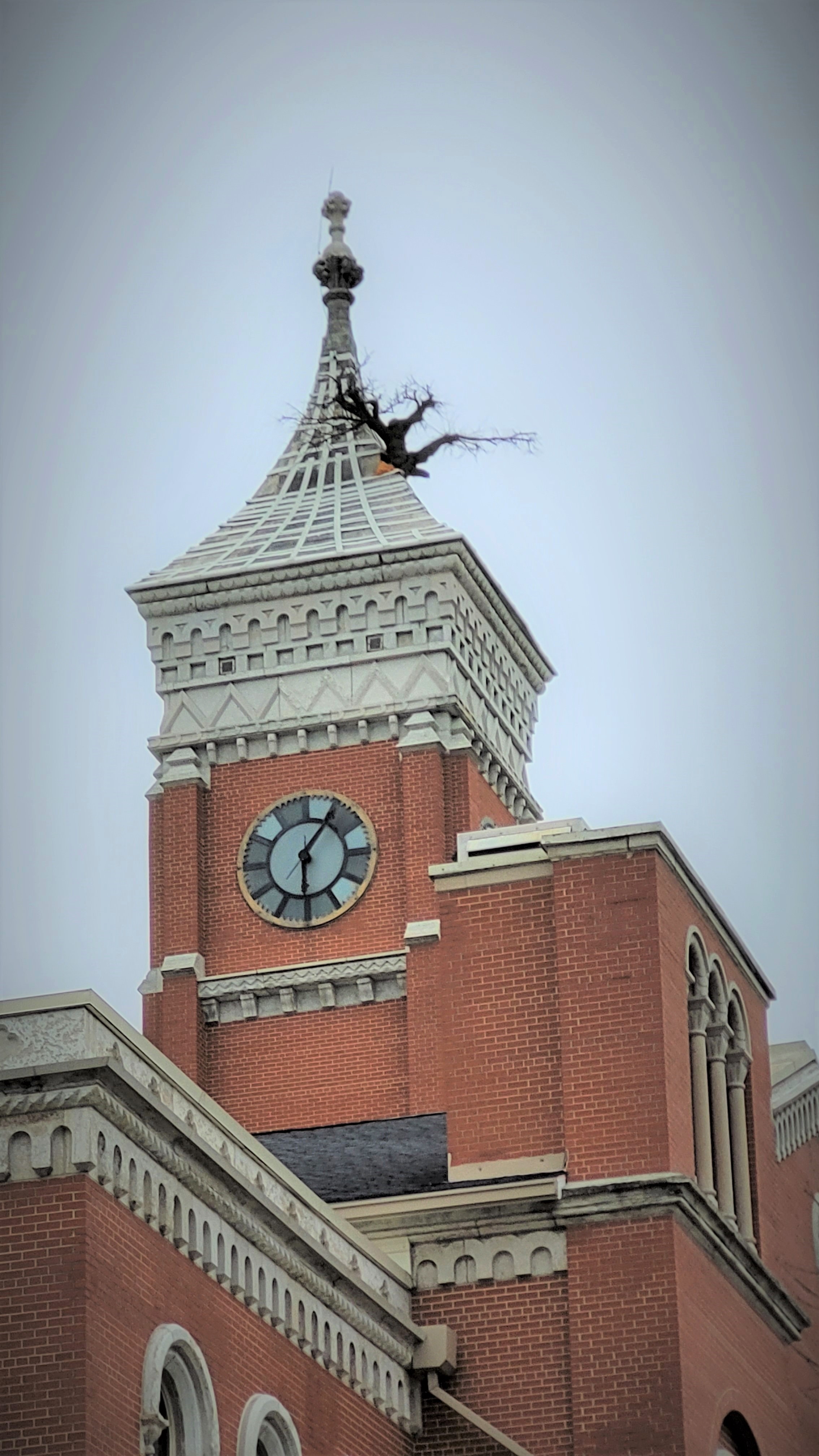 Greensburg, IN, Courthouse – with live tree on its tower – Mitch Teemley (mitchteemley.com)