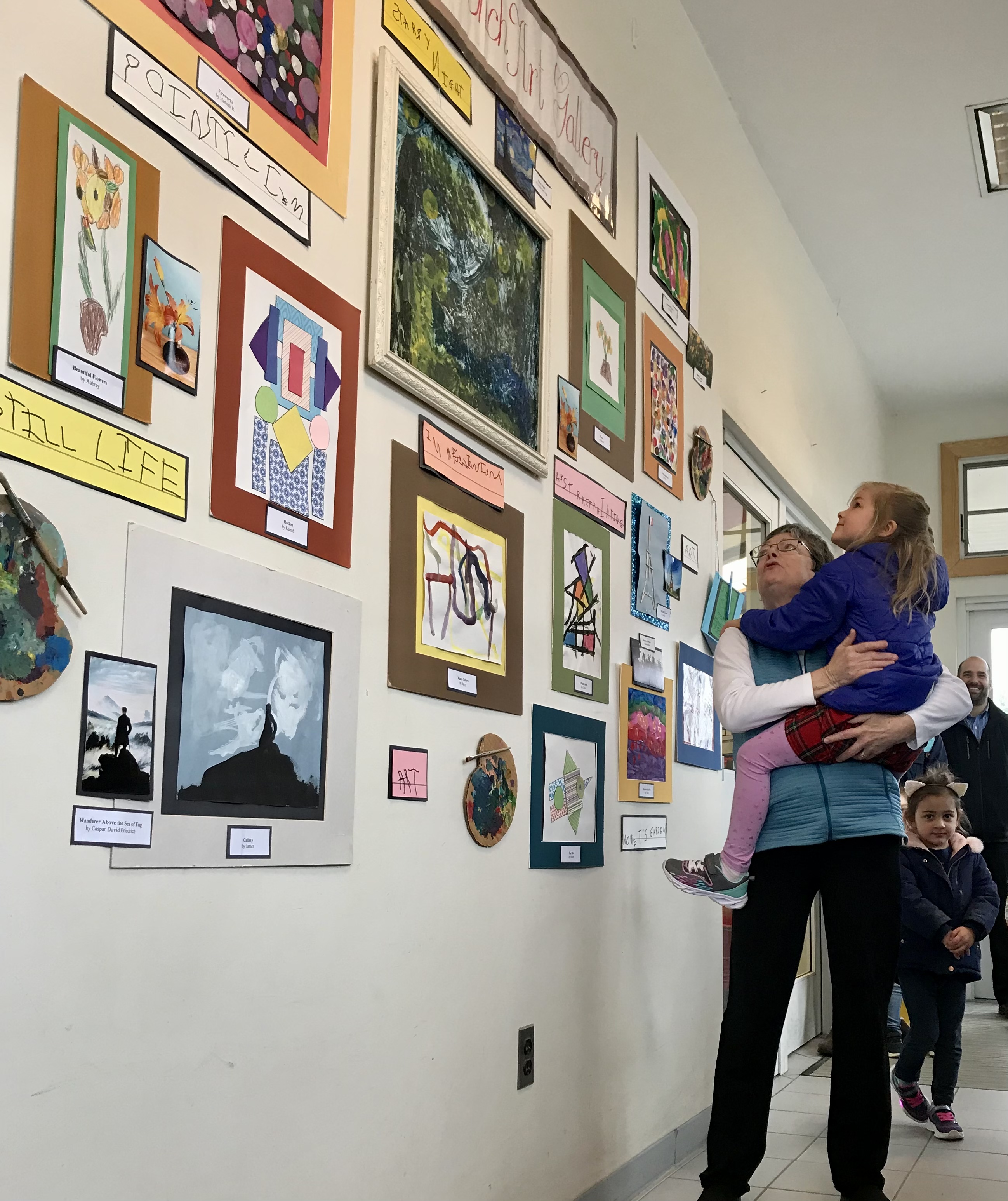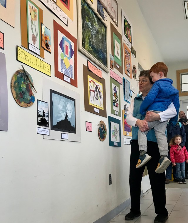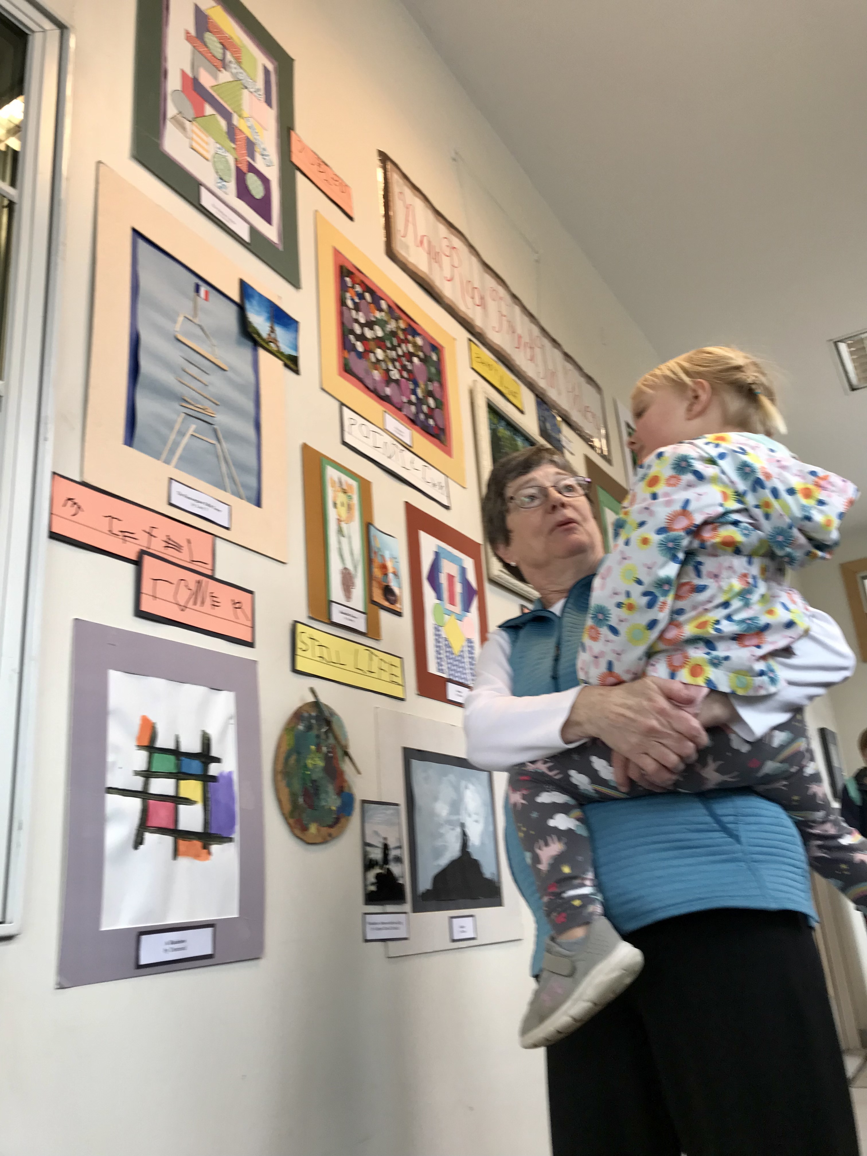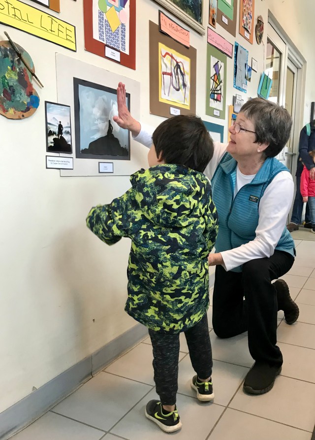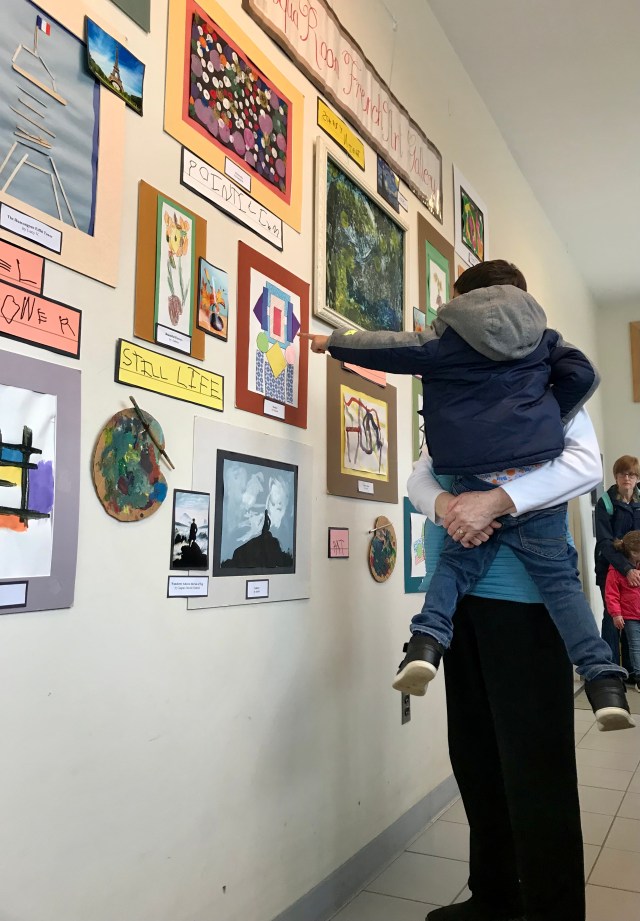 Last week I took the children and their families to see the Art Show.  It has been two years since we took a field trip.  As you can imagine, the event was eagerly anticipated by families as well as the children. Families were packed in the foyer at school, waiting as teachers walked the children to greet them.
