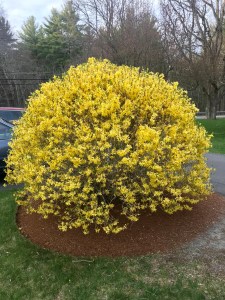 Hi Cathleen. Yes, if you want roses that truly smell, grow your own. The forsythia and daffodils have no smell. The purple flowers are azalea, and they don’t really have a smell. Gee, maybe the non-smell plants put all their energy into a burst of blooms. Because roses have a long lasting smell, that idiom of stopping to smell the roses and taking time to reflect seems perfect.