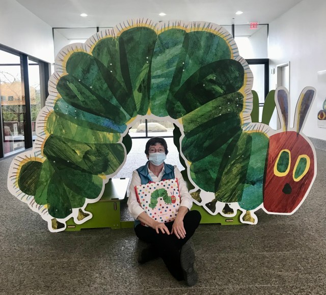 It was really wonderful! Thank you, K.L. After struggling to take a selfie in front of the caterpillar, thank goodness I found a kind soul who took the picture. Yes, all those books by Wendell Minor are inspiring.
