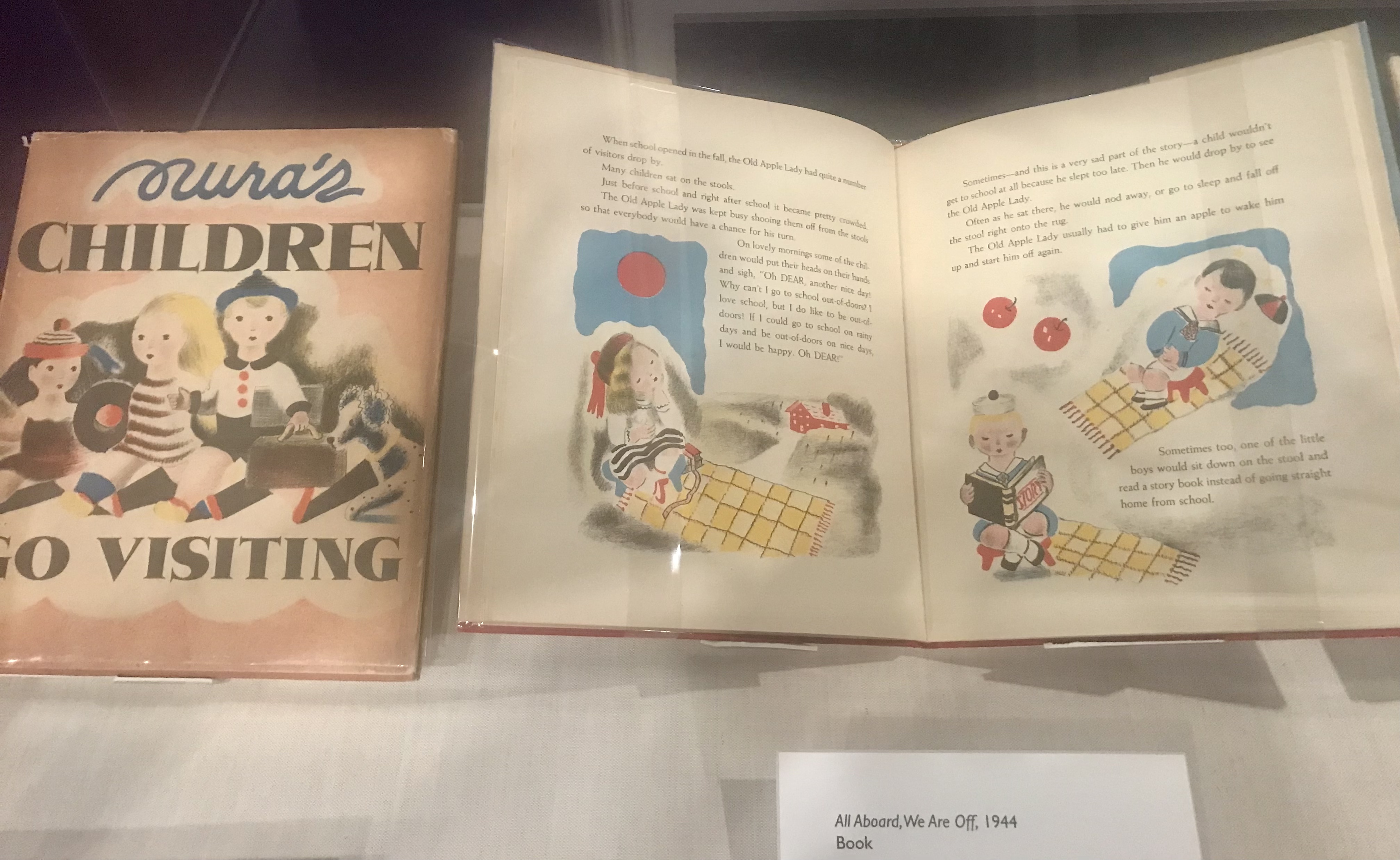 Another exhibit was the modern art of Nura Woodson Ulreich, a woman far ahead of her time. Her children’s picture books were mostly from the 40’s and early 50’s, and the illustrations are stunning. I can’t put my finger on it, but there is something very familiar here from my childhood: