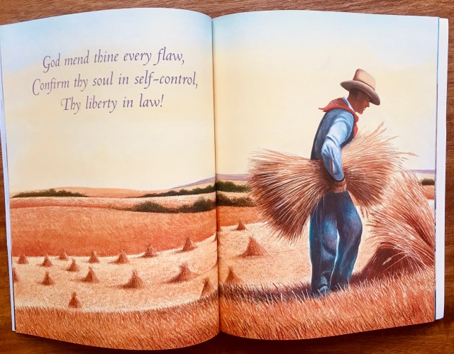 Minor brilliantly illustrated “America the Beautiful.” Yes, I had to have this book, too. I sang it to the children, and stopped at every glorious illustration on each page to truly see America, through the eyes of a visionary artist.