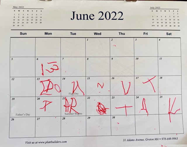 So yesterday he decided to write it down on his calendar so we don’t miss out!